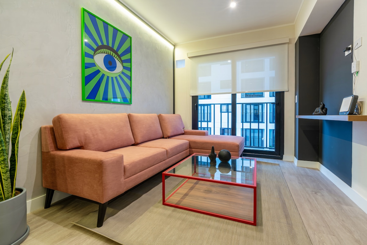 Departamento amplio y elegante en el corazón de Barranco. Ubicación privilegiada: A pasos de los principales puntos turísticos de Barranco y Miraflores, de los mejores restaurantes, bares y galerías de arte. Dormitorio principal: Cama king-size y gran walking closet. Espacio abierto y luminoso: Sala de estar y kitchenette con luz natural. Cochera privada: sujeta a disponibilidad Áreas comunes: Gimnasio, ambiente para reuniones y area de juego para niños. Estilo minimalista.