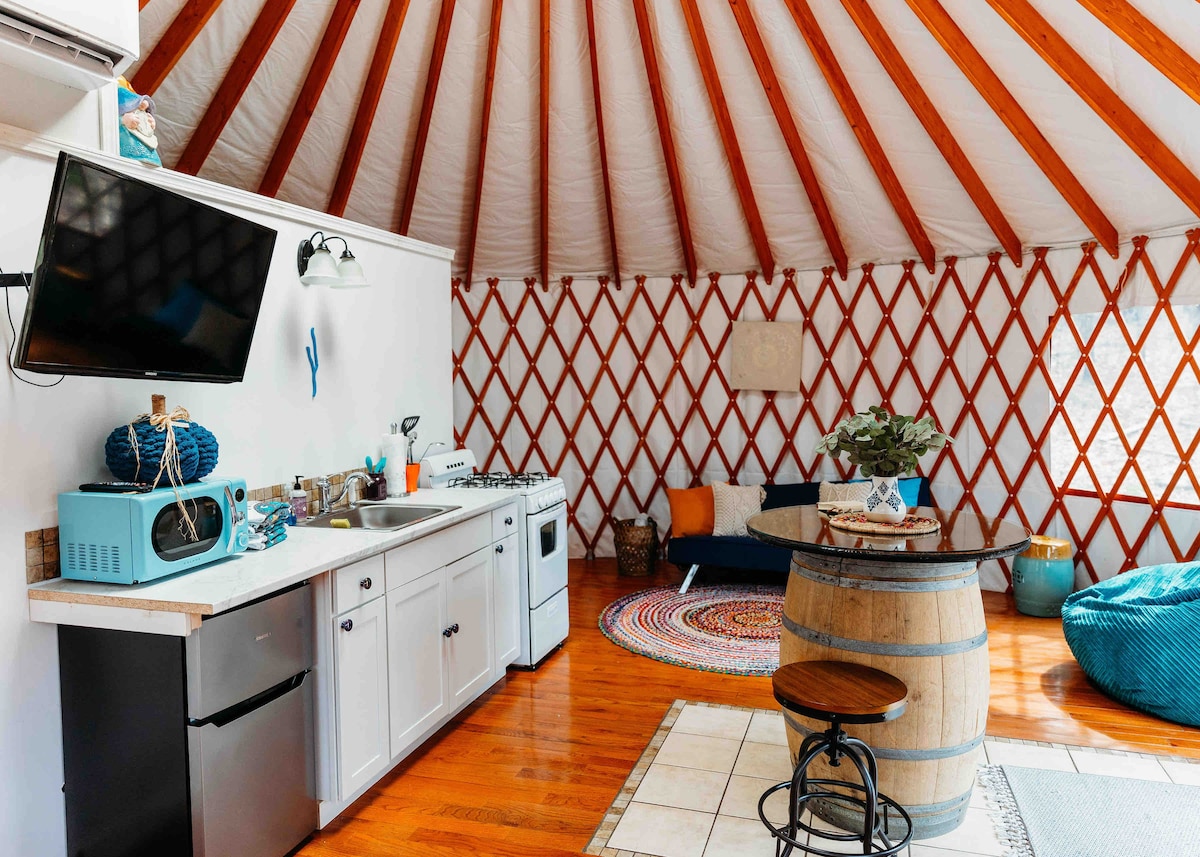 Unikni do svého soukromého jurta! Uhnízděný na 6 akrech poblíž jezera Keuka, tato celoroční jurta nabízí perfektní směs relaxace a dobrodružství. Vychutnej si zdarma šálek kávy, stargaze pod kupolí a prozkoumej nedaleké vinařství a Watkins Glen. K vybavení patří: útulná manželská postel, plně vybavená kuchyň, topení a klimatizace, rychlé Wi-Fi a venkovní ohniště. Navíc si neúčtujeme poplatek za domácí mazlíčky - přivádíme tvé chlupaté přátele! Máš nějaké nějaké otázky? Napiš nám kdykoliv - rádi ti pomůžeme!