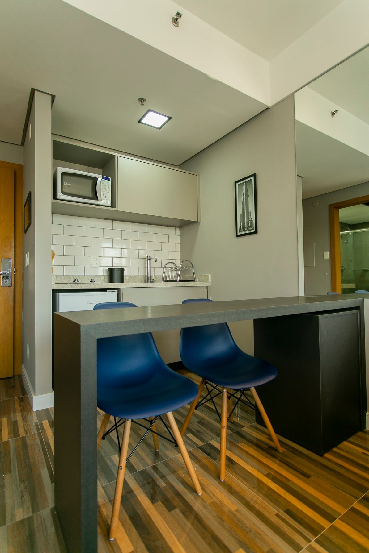 Byt v samém srdci Alphaville s veškerým komfortem pro práci, studium, odpočinek, návštěvy lékaře, pohovory, zkoušky, kurzy. Manželská postel a rozkládací pohovka. V blízkosti obchodů a služeb obecně. Vše je na dosah ruky... pěšky! Vyhřívaný bazén a posilovna v provozu. Zatemňovací závěsy pro váš odpočinek. Kuchyně se vším! V ceně je zahrnuto parkovací místo. Dřevěná podlaha z ipé.