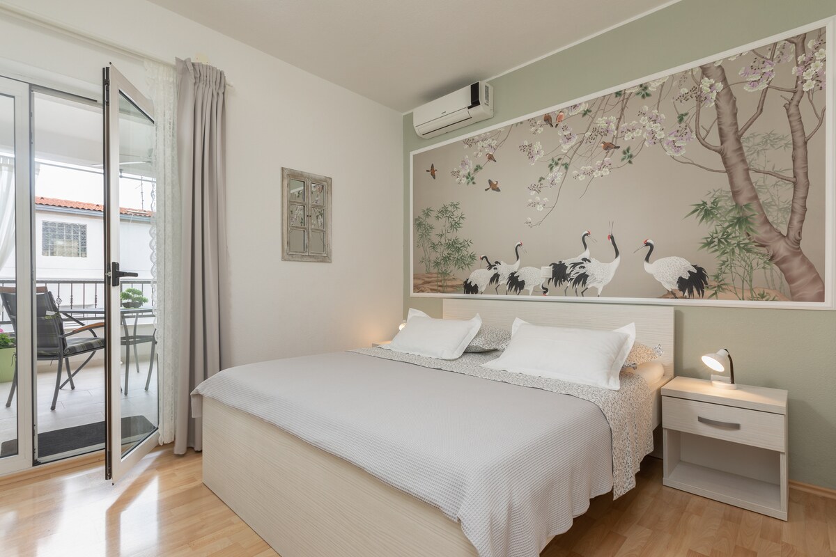 Apartmán je pro 4 osoby (2+2) Apartmán má Wi-Fi, parkoviště s video dohledem, gril, velký balkon s výhledem, TV.. atd.. Je to 2-3 minuty chůze od moře, hned vedle bytu jsou velké supermarkety, v bytě je všechno nové! (nábytek, matrace)...