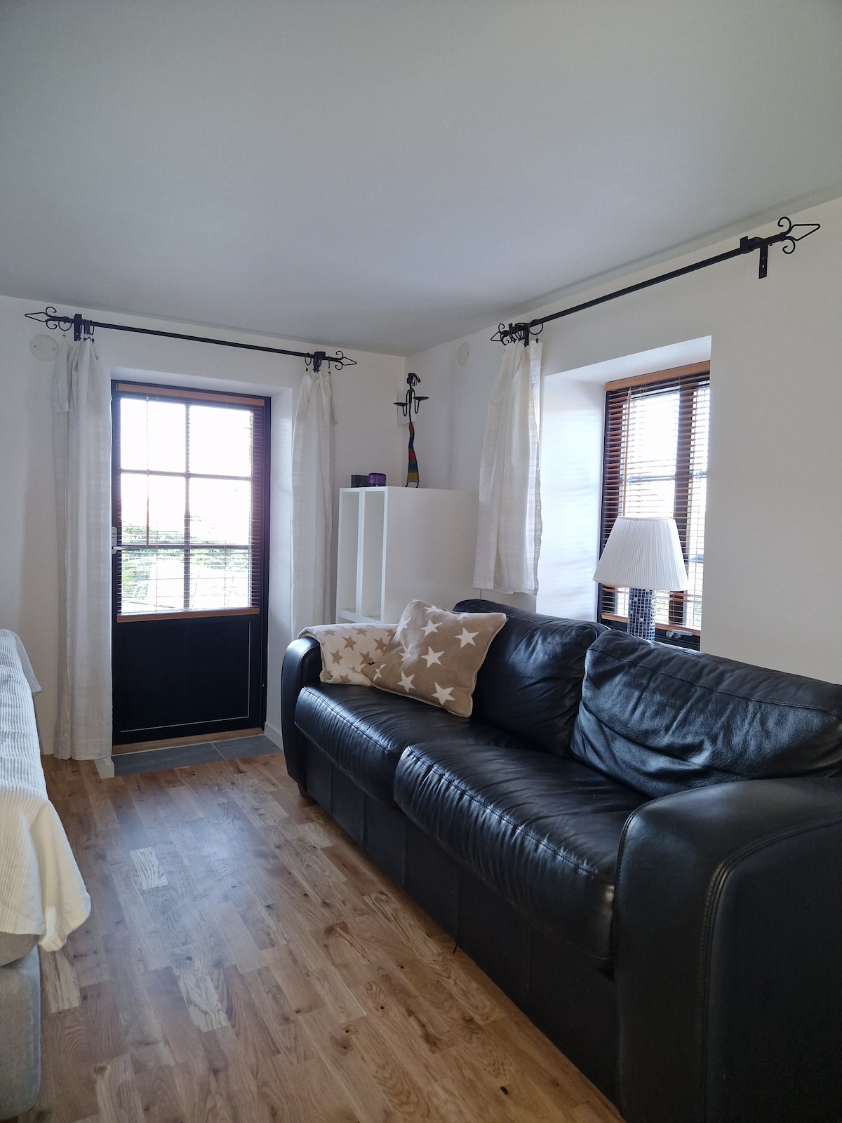 Ubytujte se útulně a klidně ve starém křížovém sálku z 19. století. Nachází se na venkově, kde jsou zvířata a příroda hned za dveřmi, ale zároveň je poblíž města, restaurací, zábavy, nákupování a pláže/koupání. Tady budete bydlet v klidu a pohodlí na ploše cca 120 m² se 2 ložnicemi, kuchyní, velkým obývacím pokojem s pohovkou, TV a jídelním koutem a koupelnou s WC, sprchou, pračkou a sušičkou. Vedle domu se nachází zelená, soukromá terasa s grilem hned vedle pastvin s ovcemi a koňmi. Auto můžete zaparkovat přímo před domem.