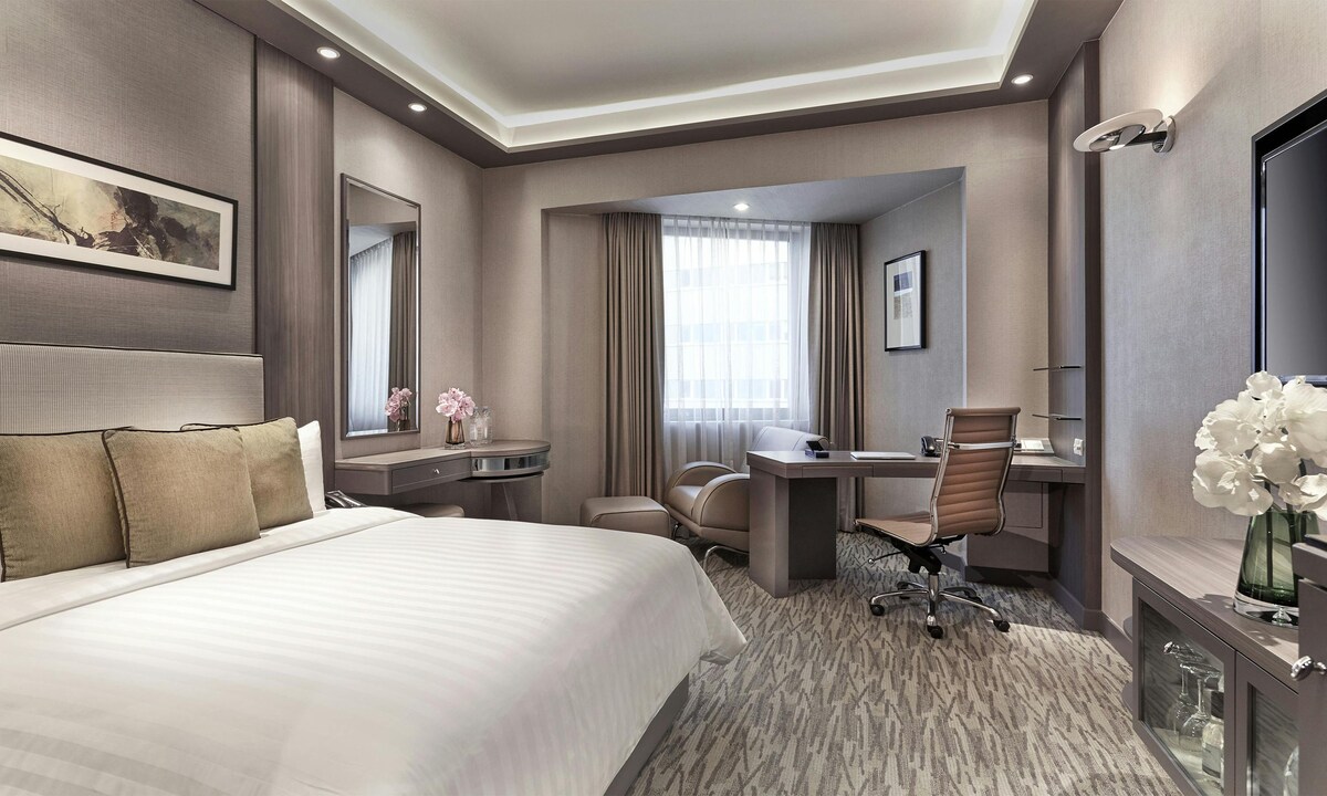 Pokoj Grand Deluxe Waterfront nabízí prostorné klimatizované uspořádání s manželskou postelí, vlastní koupelnou a prémiovými doplňky, jako jsou bezplatné toaletní potřeby, župany a pantofle. Hosté si mohou užít televizi s plochou obrazovkou, minibar, šatní skříň, trezor a nádherný výhled na řeku Singapur pro skutečně relaxační pobyt. Tato jednotka má 1 manželskou postel.