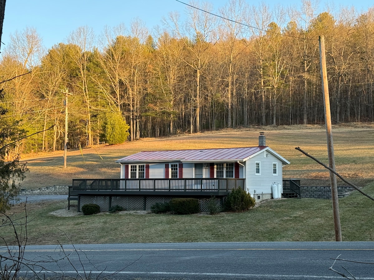 Okouzlující dům pro hosty se 2 ložnicemi a 1 koupelnou pro čtyři osoby s výhledem na řeku Cowpasture na 350 akrové pracovní farmě. Hosté mohou využít náš betonový tenisový kurt a prozkoumat kilometry turistických stezek, které vedou do národního lesa. Farmu obklopuje více než 2,5 míle řeky Cowpasture. Hned vedle mostu je štěrková pláž, kde si můžete užít brodění a koupání. Řeka je zde hluboká 3–4 stopy v závislosti na ročním období a průtoku potoka.