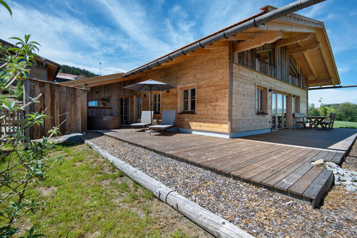 Znovu otevřeno v srpnu 2024! Váš odpočinek v Bavorském lese – ideální pro 2 dospělé jako relaxační dovolená pro páry nebo s 2 dětmi jako aktivní rodinná dovolená. Chata je zařízena v rustikálně moderním stylu a vybavena s laskavostí a láskou. Nachází se v idilickém prostředí obklopené lesy a loukami a slibuje dokonalý odpočinek. Prostorná terasa s rybníkem a grilem nabízí úchvatný výhled a spoustu soukromí. Odpočiňte si v sauně nebo využijte četné turistické a cyklistické stezky.