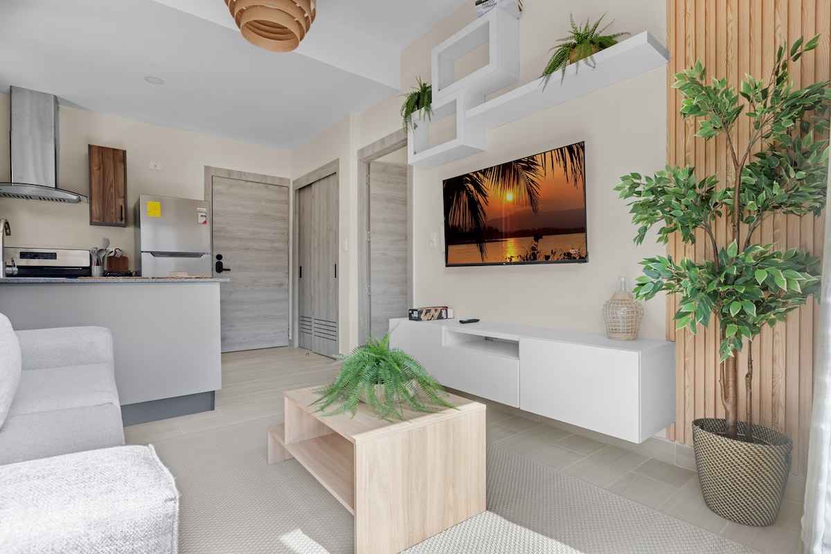 Vítej ve svém vysněném útočišti! Tento nádherný apartmán s jednou ložnicí na 3. patře nabízí úchvatný 180stupňový výhled na tyrkysové vody Atlantského oceánu. Tento moderní a stylový prostor se nachází v srdci Punta Cana a je ideální pro páry, které hledají romantický pobyt, nebo pracovníky, kteří potřebují klidné a inspirativní prostředí. Užij si vysokorychlostní internet, samoobslužný check-in a luxusní vybavení, které ti pobyt usnadní.