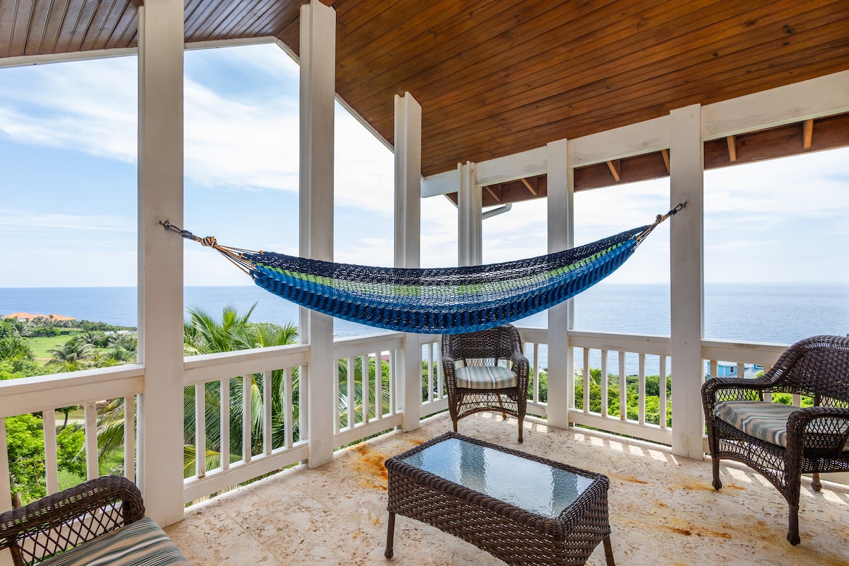 Roatan-Coral Views Casa de Yolo, výhled na oceán s bazénem