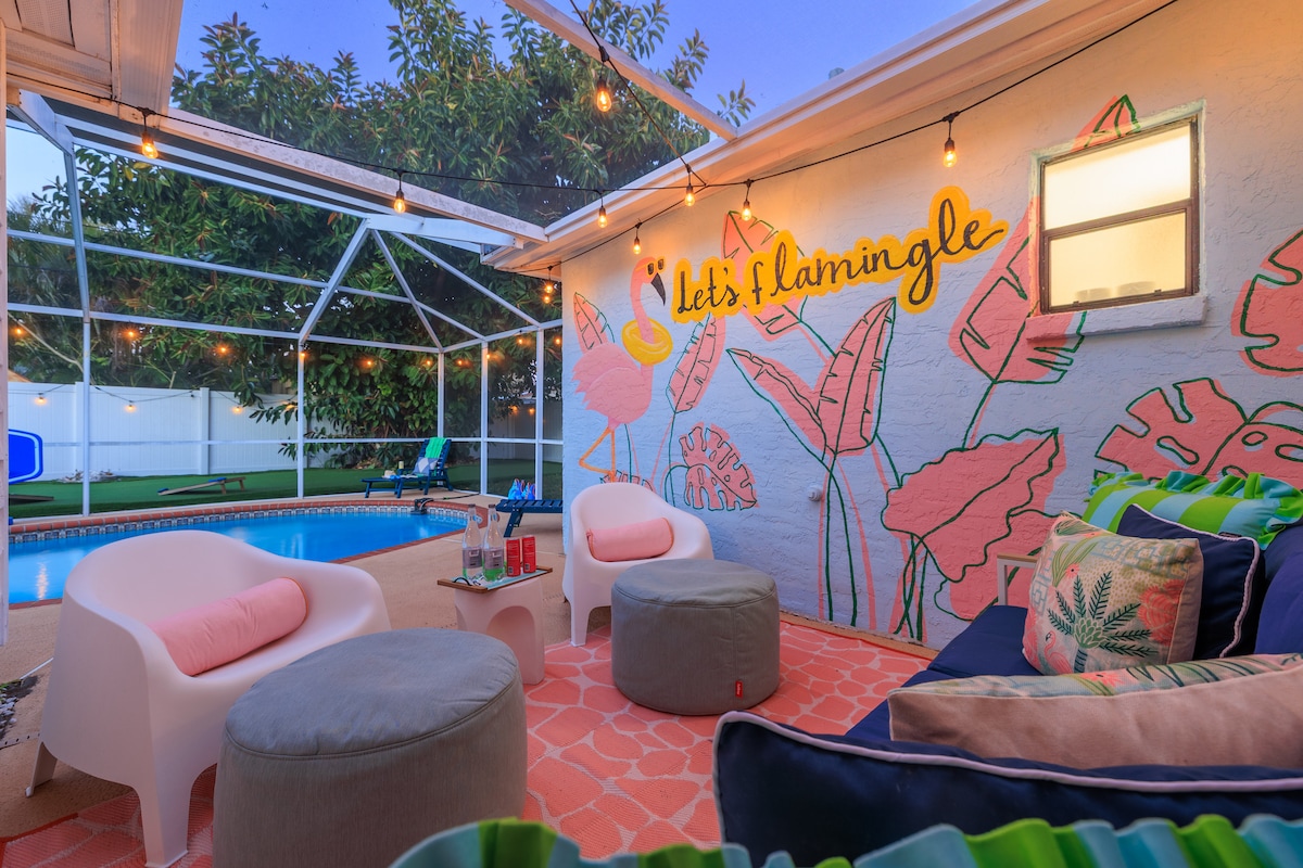 TropicalPOOL Oasis- 5 Minutes to Beach-Fun Decor!