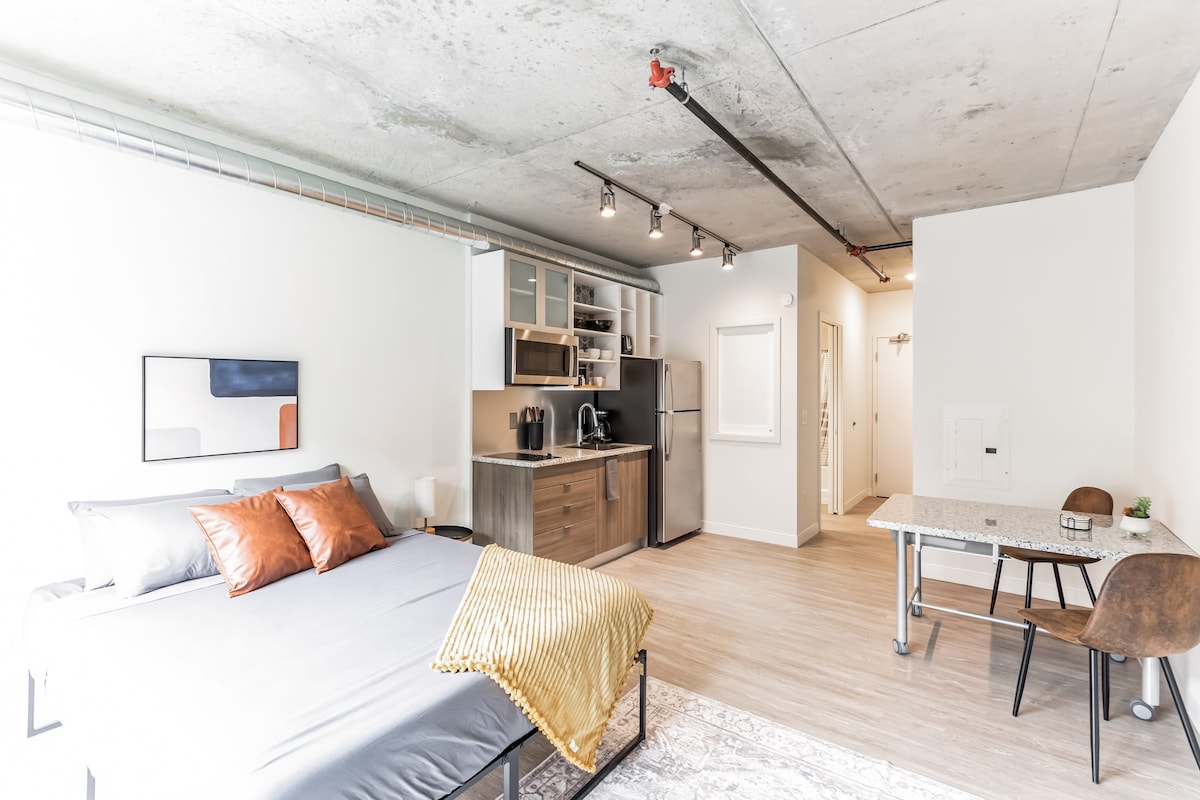 🏙️ Moderní městský podkroví v clevelandské čtvrti Warehouse District 🧱 Cihlová stěna a panoráma města 💻 Vyhrazený kancelářský prostor ☕ Keurig • Filtr • Kávovar na espresso 📺 Smart TV s Chromecastem + YouTube TV 🍳 Plně zásobená kuchyně 🚶 Pěšky na stadiony, do Rock Hall, na byty a další Užij si pravý život v centru města v tomto stylovém bytě ve třetím patře. Díky kombinaci industriálního kouzla a moderního komfortu je tento prostor ideální pro profesionály, páry nebo cestovatele, kteří hledají autentický zážitek z Clevelandu.