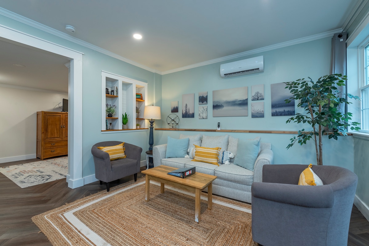 Enjoy a stylish and comfortable stay in this centrally located, first-floor suite—no steps required. Relax on your private patio, unwind by the electric fireplace, and rest easy in the king bed. The suite includes a well-stocked kitchenette and all the essentials for a seamless, enjoyable visit. You’ll be: • 10 min to Downtown Asheville • 8 min to UNC Asheville • 10 min to the Grove Park Inn • 20 min to the Biltmore Estate • 1 hour 20 minto the Great Smoky Mtns (Oconaluftee Visitor Center)