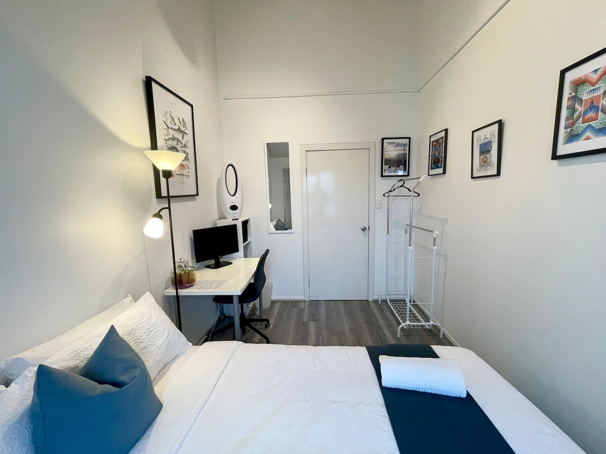 Ložnice s manželskou postelí v Belmontu, v blízkosti letiště