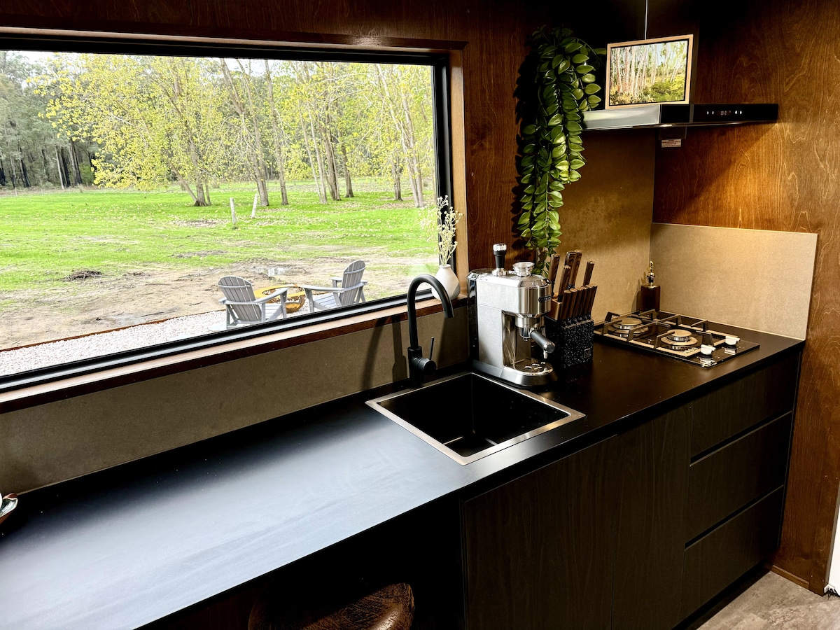 Kdyby bylo možné místo vydechnout, bylo by to právě toto. Prostor byl vytvořen s ohledem na pomalý a udržitelný život, což vám dává prostor k dýchání a čas k tomu, abyste se skutečně vypnuli. The Lookout se nachází na otevřené louce s 360stupňovým výhledem na zemědělskou půdu. Vychutnejte si to vše z vany nebo přes obrovská okna, která rámují výhledy táhnoucí se přímo přes divočinu Wildwoodu. Uvnitř je útulné objetí; je to snové útočiště pro dva. Bohužel naše ubytování není nastaveno pro hostitelství novorozenců, kojenců nebo batolat.