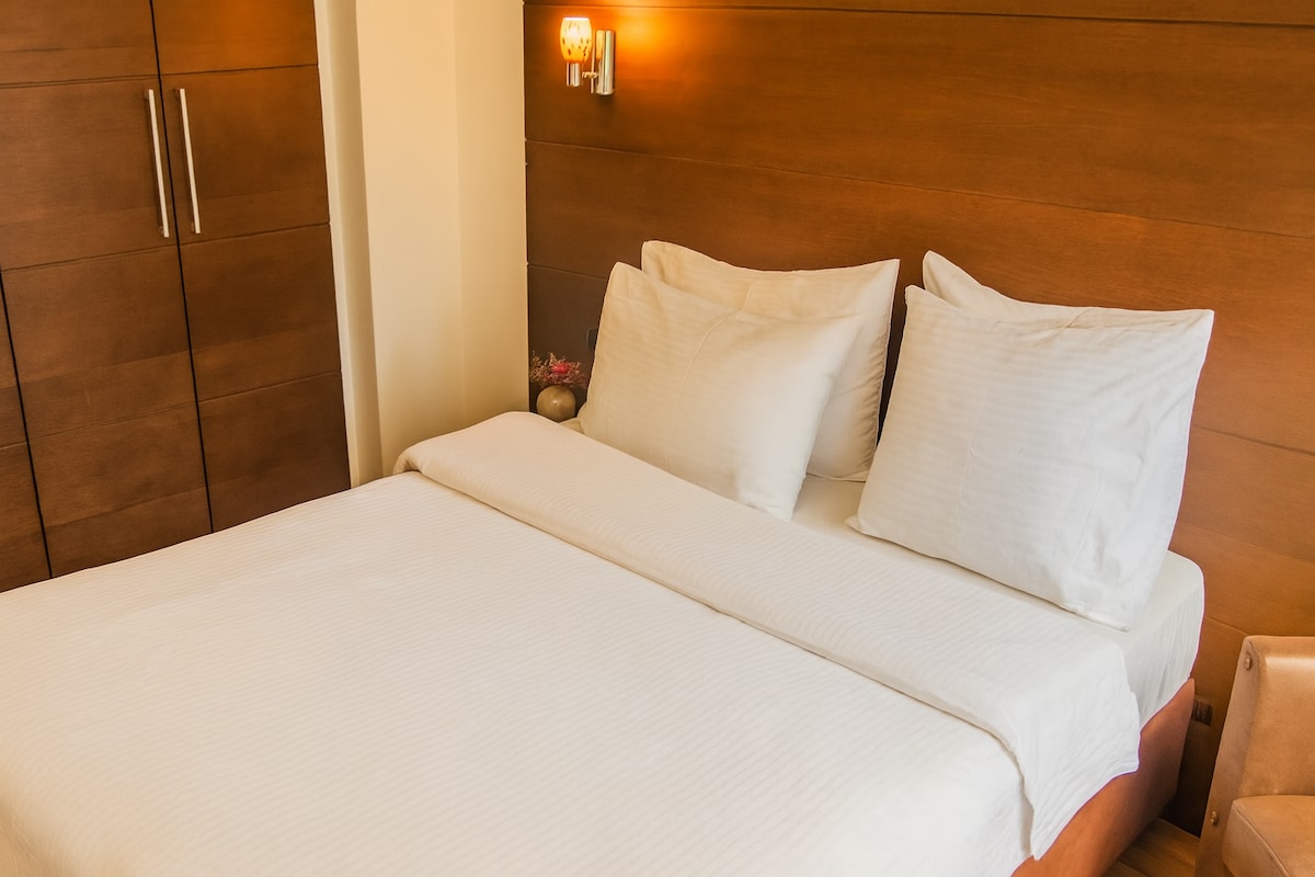 Tento útulný garsonka je ideálním ubytováním pro jednotlivce. Byt je součástí hotelu Sky Suites, který je servisovaným zařízeným apartmánem/hotelem. Studio má světlý obývací pokoj, plně vybavený kuchyňský kout a vlastní koupelnu s toaletními potřebami zdarma. Nachází se na klidné ulici a nabízí snadný přístup k restauracím, kavárnám a nemocnicím, což z něj činí vynikající volbu pro každého, kdo hledá pohodlný a příjemný pobyt, ať už krátký nebo dlouhý.
