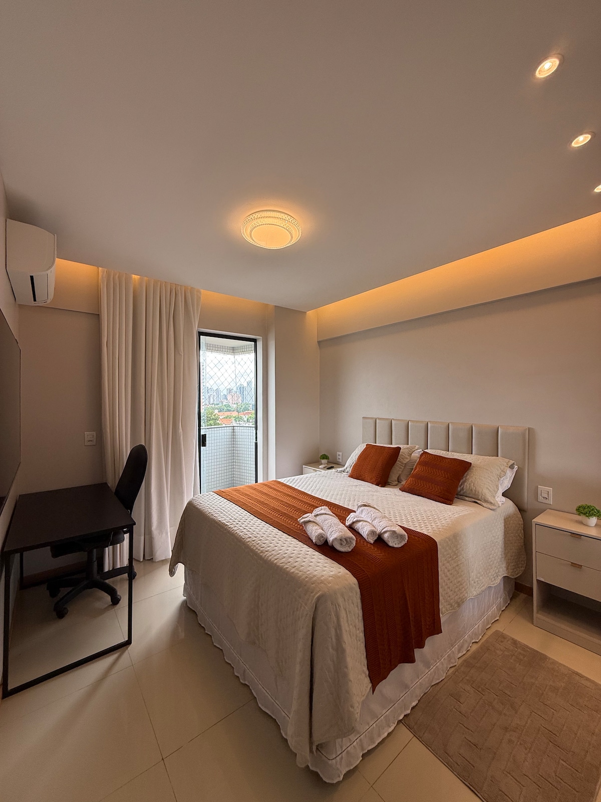 Enjoy a comfortable stay in Belém! This premium apartment features 2 air-conditioned bedrooms, a cozy living room, fast Wi-Fi and a fully equipped kitchen. The building offers a pool, gym, mini-market and 24/7 security. Located on Av. Gentil Bittencourt, you’ll be close to major city attractions, events, restaurants and services. A modern, practical and welcoming space for those seeking convenience, relaxation and mobility.
