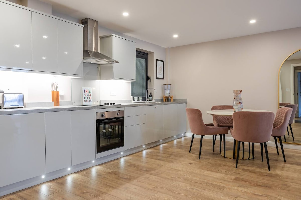 Vítejte v našem luxusním apartmánu se dvěma ložnicemi, který se nachází v srdci historické katedrální čtvrti Belfastu. Objevte dokonalou kombinaci moderního pohodlí a nadčasového šarmu v tomto stylovém apartmánu, který pohodlně pojme šest hostů. Zažij bohatou historii Belfastu, jeho pulzující kulturu a vzrušující noční život, a to vše při vychutnávání klidu a elegance naší prvotřídní lokality, jen pár kroků od ikonické katedrály sv. Anny.