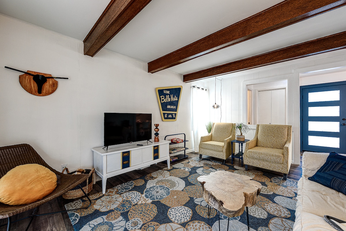 Mtn Modern je útulný útočiště v srdci krásné Bella Vista, Arkansas. Jsme pár minut od prvotřídních turistických a cyklistických stezek, golfových hřišť, jezer, muzea Crystal Bridges, Walmartu, Cooper Memorial Chapel, chladných městských restaurací a všech malebných krás přírodního státu. Náš dům s 2 ložnicemi spí 6 a je ideální pro mimoměstské svatební hosty, manažery, kteří potřebují rychlý nebo prodloužený pobyt nebo horské cyklisty, kteří jsou připraveni dobýt stezky. Rezervuj si pobyt ještě dnes a udělej si pohodlí!