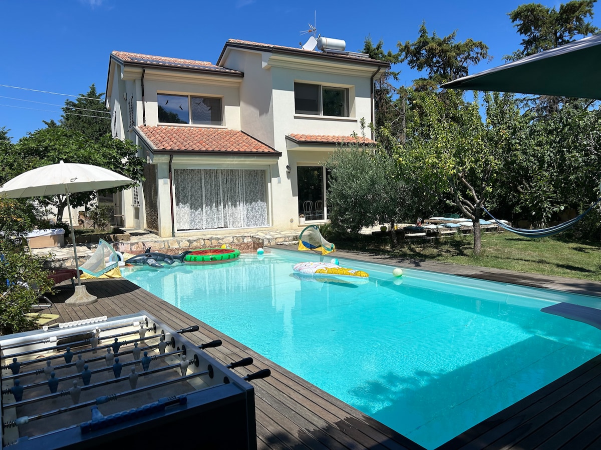 Krásná vila pro exkluzivní a soukromé použití. Samostatně stojící vila s krásným bazénem a velkým venkovním prostorem se zahradou, prostorným jídelním stolem, verandou s relaxačním prostorem, lehátky, šatnou a další koupelnou. Útočiště klidu, relaxace a soukromí. V blízkosti moře a města. Budeš mít čtyři ložnice, dvě koupelny, dva jídelní kouty s profesionální kuchyní, tři obytné prostory, wifi, parkování a mnoho dalšího. Jedinečná lokalita s krásným výhledem na hrad Gradara!