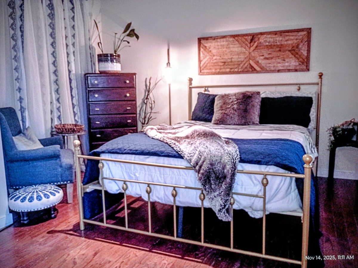 Nachází se v historické čtvrti Monroe v Richmondu, tento 2 příběh záliv přední majetek začal svůj život jako elegantní domov pro prominentní Richmond rodiny v pozdní 1800. Renovace moderních standardů se 4 byty, každý se soukromými vchody. K dispozici je jedno parkovací místo (maximálně středně velké vozidlo pro cestující). Byt má menší matraci s paměťovou pěnou v soukromé ložnici a pohovku s matrací z paměťové pěny umístěnou v hlavním obytném prostoru. Ubytuje až 4 hosty.
