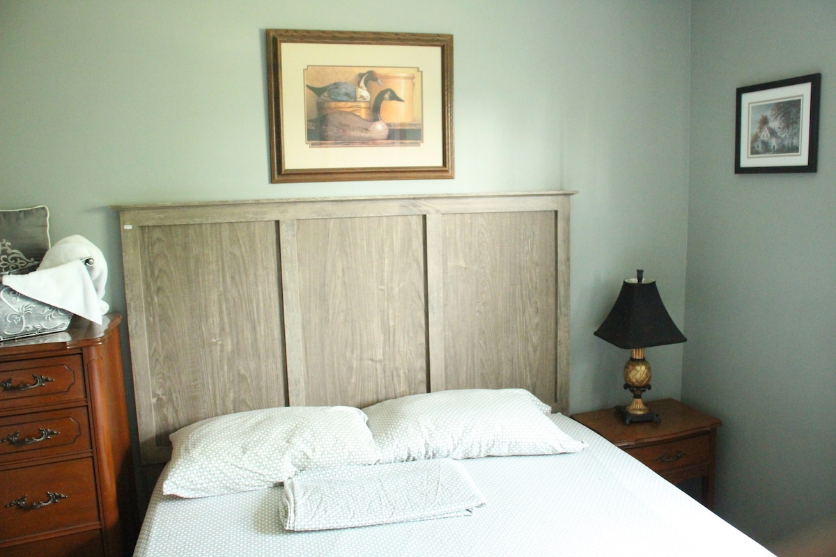 Pěkný jasně zařízený suterénní byt jen 2 minuty od 401. Krásný dvorek na řece Moira. Minuty od nákupního centra Quinte Mall, obchodu s lihovinami, Walmartu a restaurací. 5 minut do centra Součástí apartmá je manželská postel Queen, 3dílná koupelna, jídelní stůl pro 2 osoby, lednice s mrazákem, mikrovlnná trouba, kávovar keurig, káva, rychlovarná konvice, konvekční trouba a toustovač. Iron 5G speed network Ručně malované dřevěné podlahy a krb. Původní umělecká díla a ručně malované obrazy mé dcery.