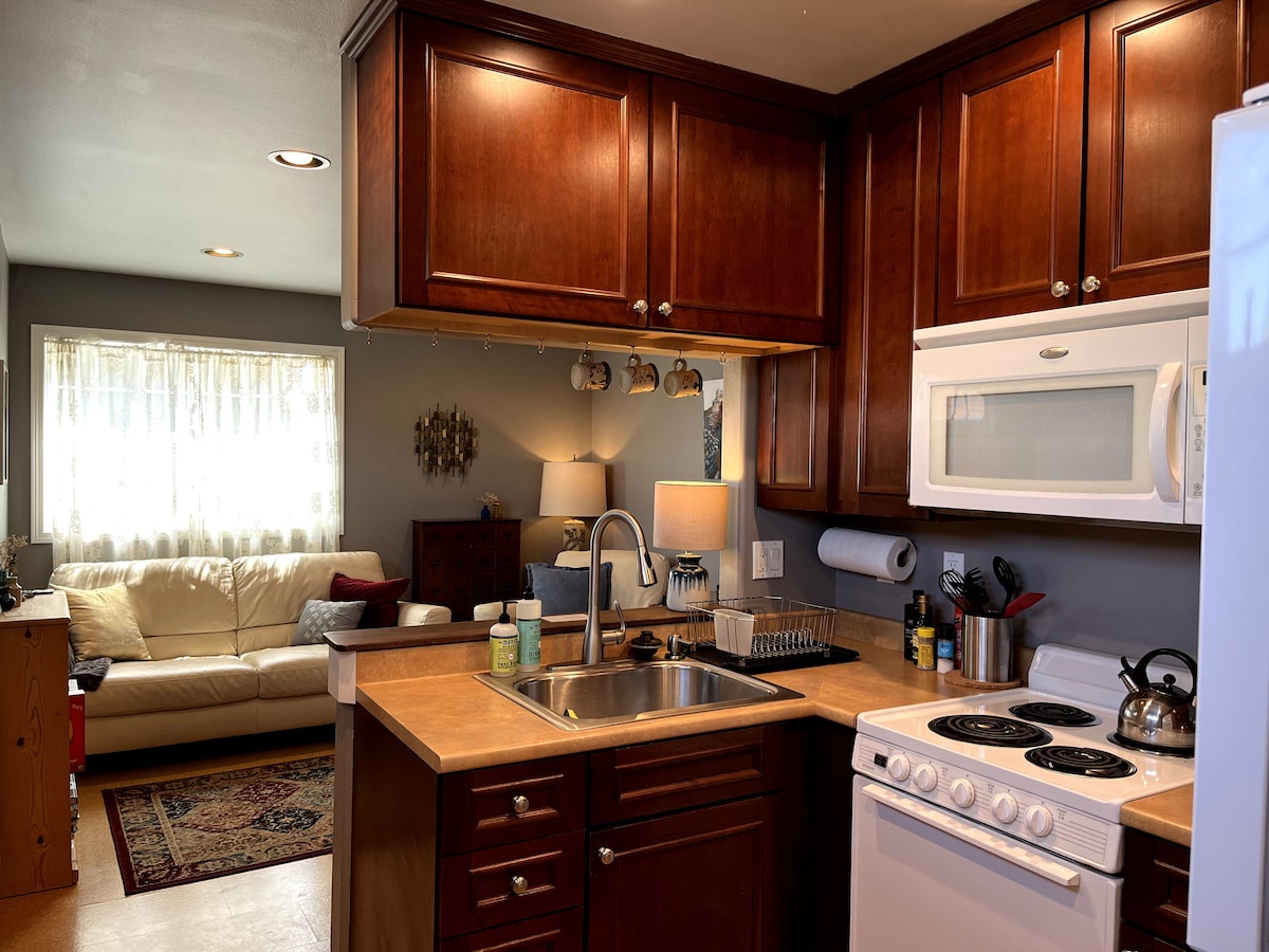 Apartmá STUDIO. Soukromý vchod. Světlý, moderní prostor v klidné obytné čtvrti * 2 bloky do centra Fairhavenu, 1,5 míle chůze od kampusu WWU * Kuchyňský kout, manželská postel, Netflix * Soukromé parkování mimo ulici, nabíječka na elektromobily 2. úrovně * 3 bloky od uzlů veřejné dopravy (autobus, Amtrak, Alaska Ferry)