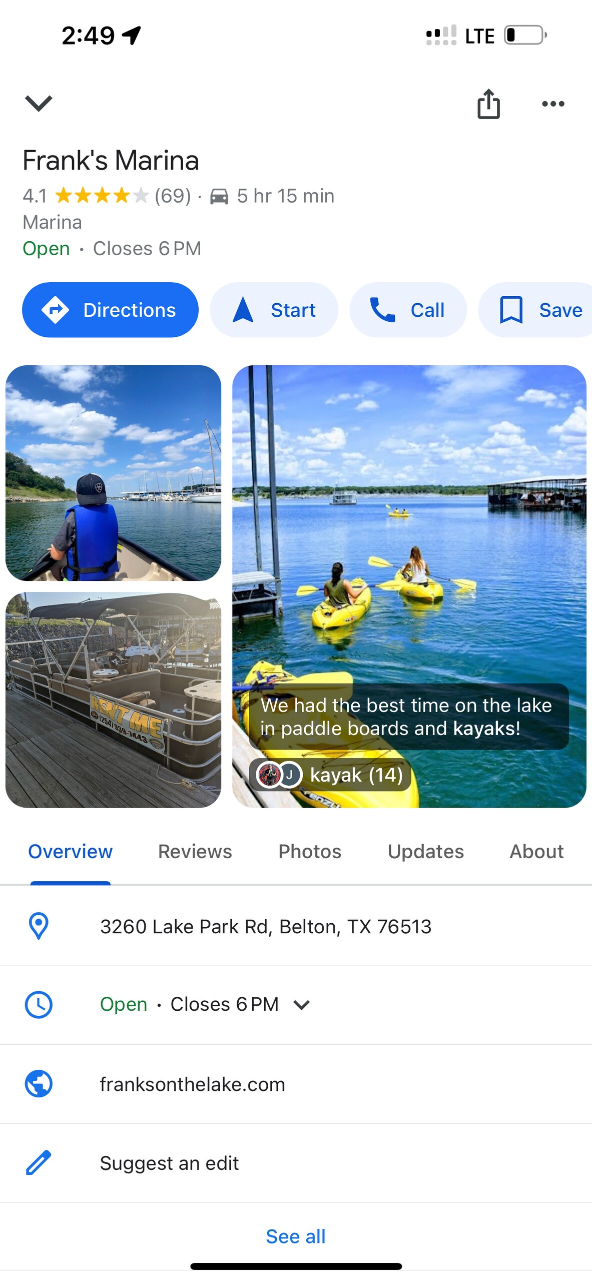 - Pronájmy ubytování vybavených kajakem Belton Lake
