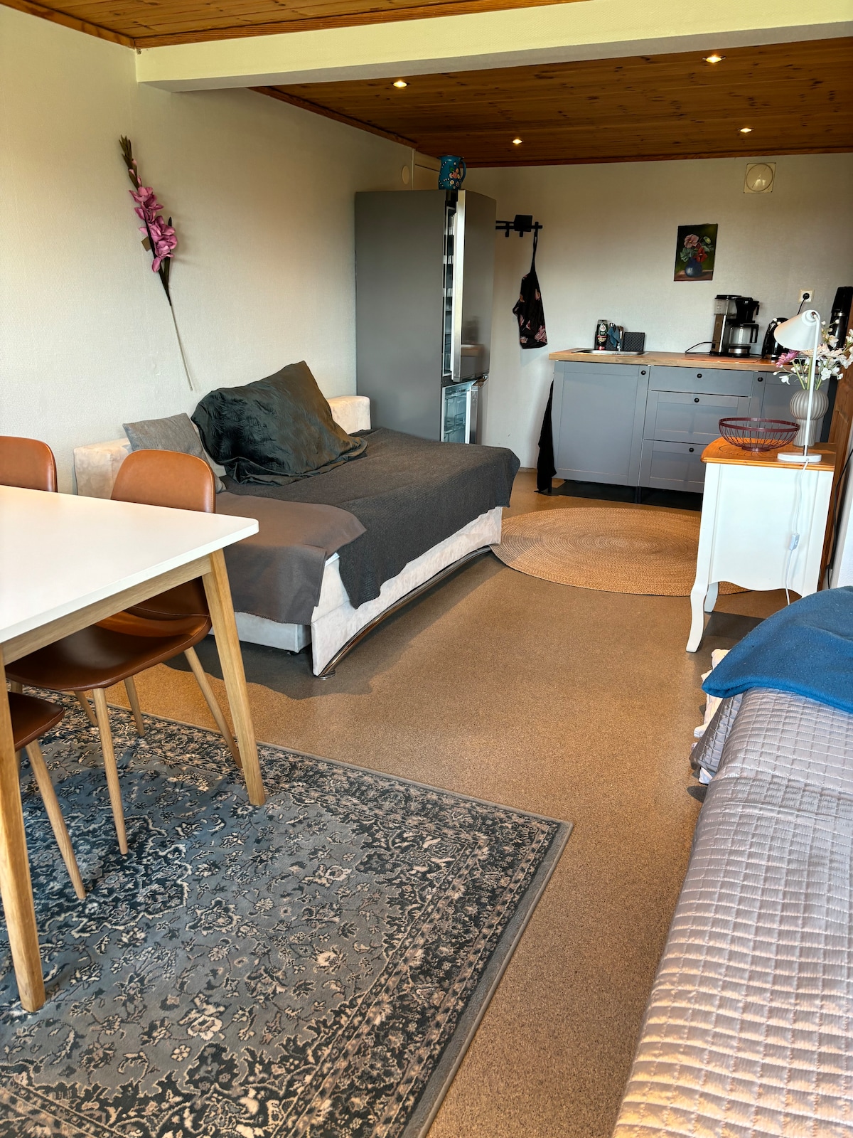 Panoramavy över Östersjön, 15 meter till badstrand med brygga och strandcafé. Somna och vakna till vågornas brus. Två sängar där du ligger på första parkett och ser ut över havet. Pentry med två kokplattor, microugn, kaffebryggare, kyl och frysskåp. Liten matplats, två fåtöljer, TV, Wi-Fi. Badrum med dusch o wc. Stor terrass, gasolgrill. Huset ligger mitt i kustbyn Svarte, ca 6 km till Ystad dit du lätt kör med bil eller cyklar längs havet. Busshållplats och tågstation med goda kommunikationer.