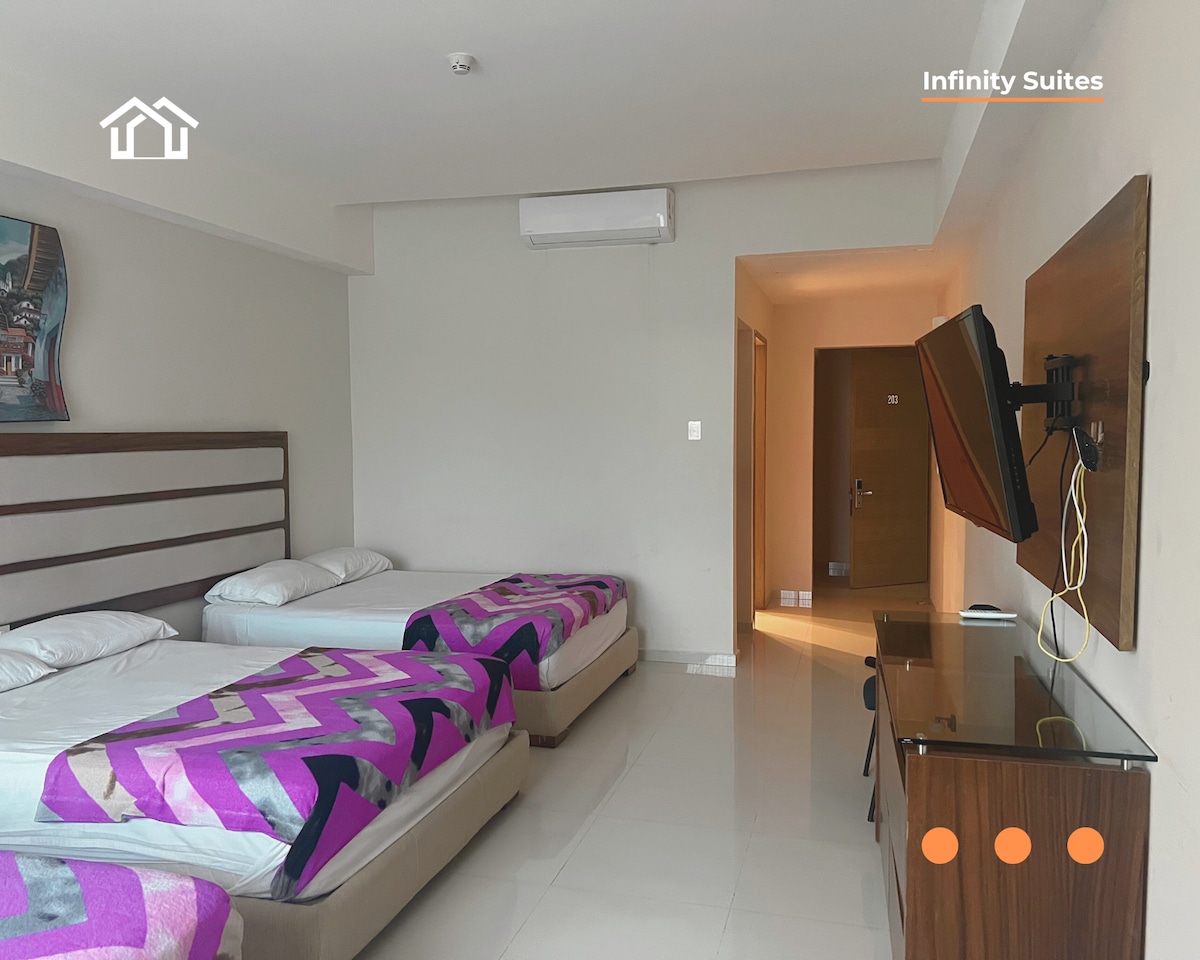¡Encantador Suite Familiar en Aparthotel con piscina! Perfecta para familias o grupos que viajen juntos pero busquen habitaciones separadas. Contarán con 2 habitaciones privadas y 1 baño completo privado. -Cada habitación cuenta con: -A/C -SMART TV con cable -Closet y frigobar Además podrán disfrutar la piscina de este bello aparthotel, así como su cocina. --Ubicado en privada residencial con seguridad -gran ubicación cercano a supermercado, parada de bus y restaurantes.