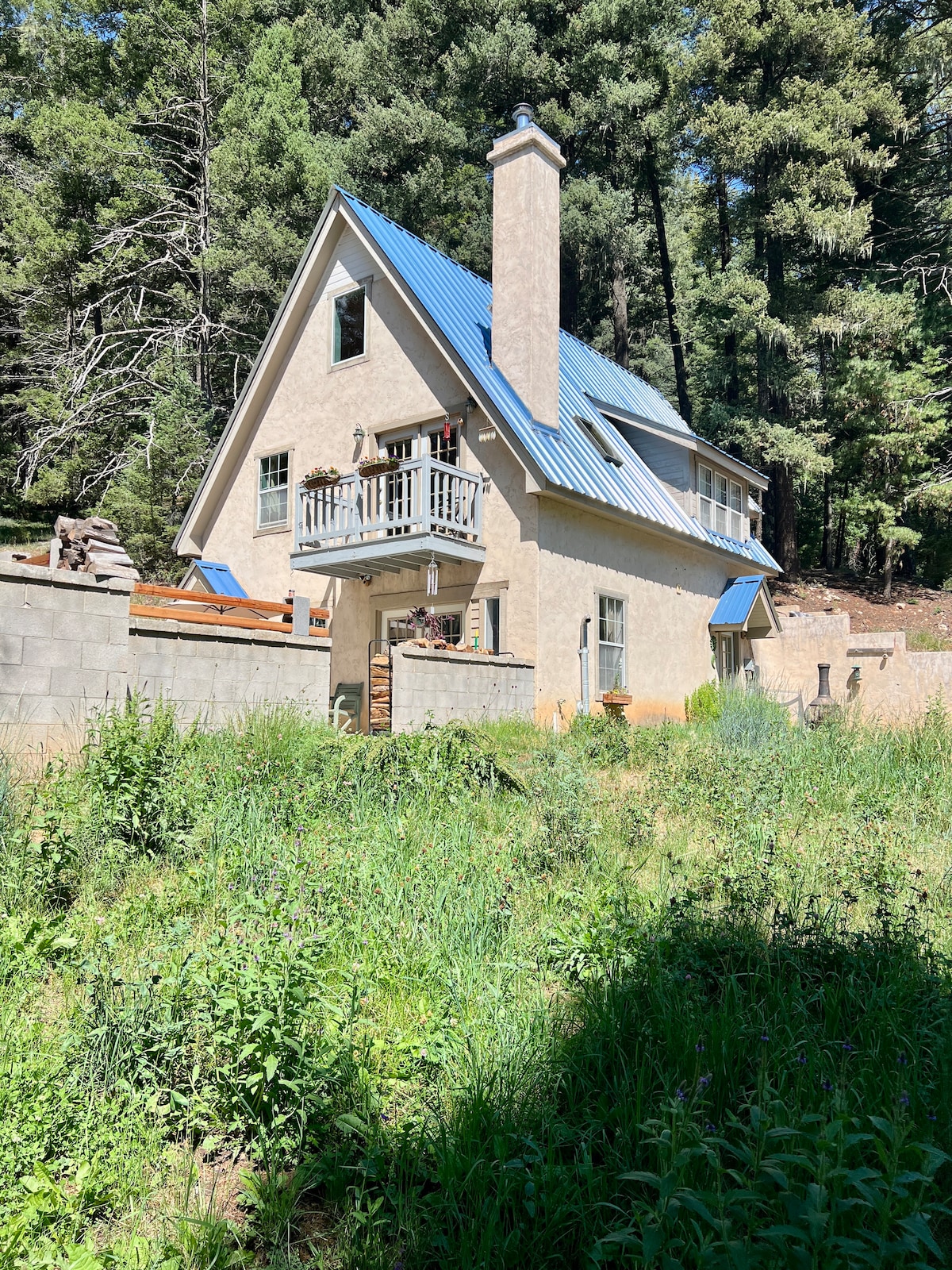 Welcome to Shangri-La! A unique, private, and magical setting right in the middle of Cloudcroft. Almost half a fenced acre where you can wander the grounds, enjoy the fire pit, read in the cozy separate office, or grill on the barbecue. Within walking distance of the Lodge and golf course, or the Village boardwalk for shopping. Lots of personal touches! And if you watch for fairies, birds, or other forest creatures, they are all close by! Hot plate, fridge, and microwave provided.