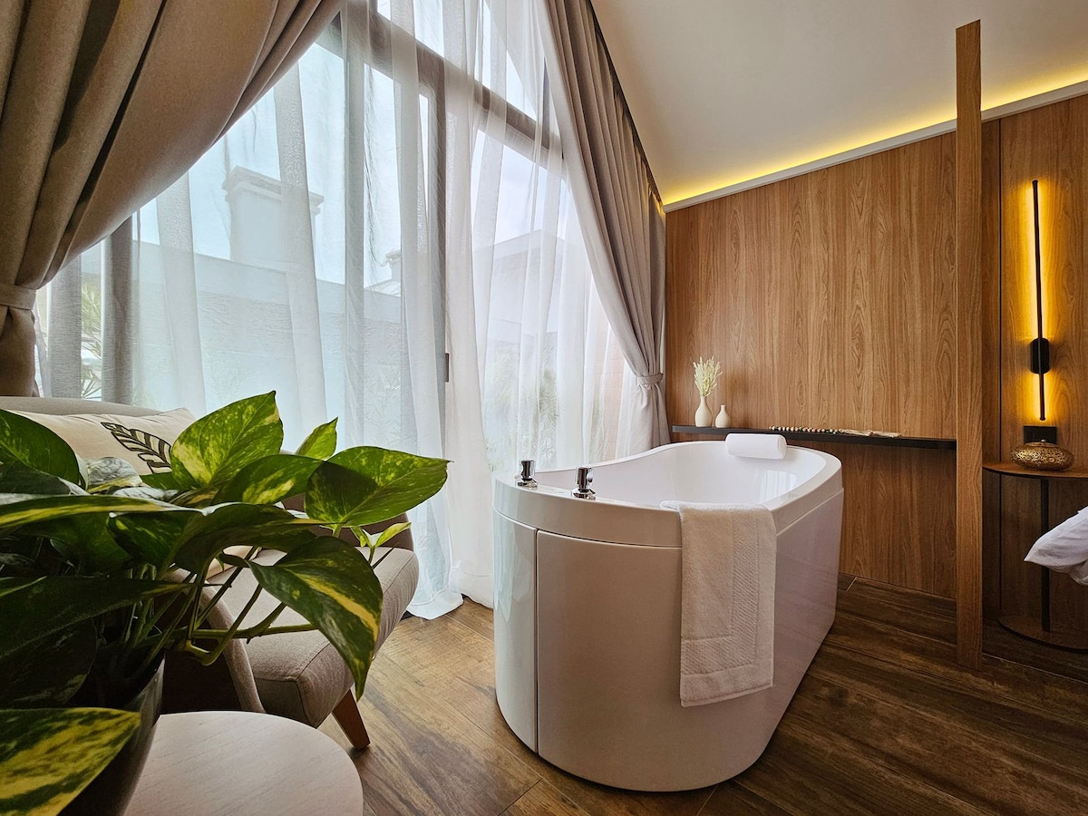Localizada dentro da cidade, a apenas 1000 metros do centro, a cabana Malbec tem um visual interno que mescla o contemporâneo com a rusticidade do rural, o revestimento em pedra na parede transmite um toque de casa antiga da vovó e os painéis de madeira, aquecem o ambiente num visual mais intimista. Na banheira de imersão, respire fundo e permita que a água morna acalme sua mente e tire a tensão do seu corpo, transportando-o para um estado de total relaxamento. *Café Manhã Opcional.