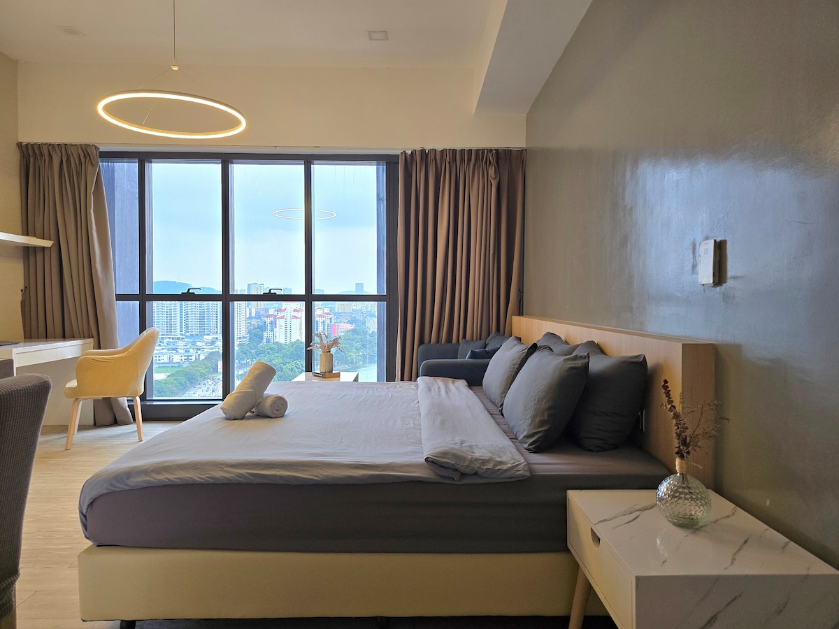 📍Pertama Residency Welcome to my New Bnb - Moonrise City! This studio is newly set up with lots of love, combines contemporary decor with modern amenities and an experience all can enjoy especially Jacuzzi moment with your love & 120” projector screen w/Netflix. This unique place has a style all its own, it offers a cozy, clean, quiet & refreshing stay environment for couples. Come and experience in the new bnb! See you.