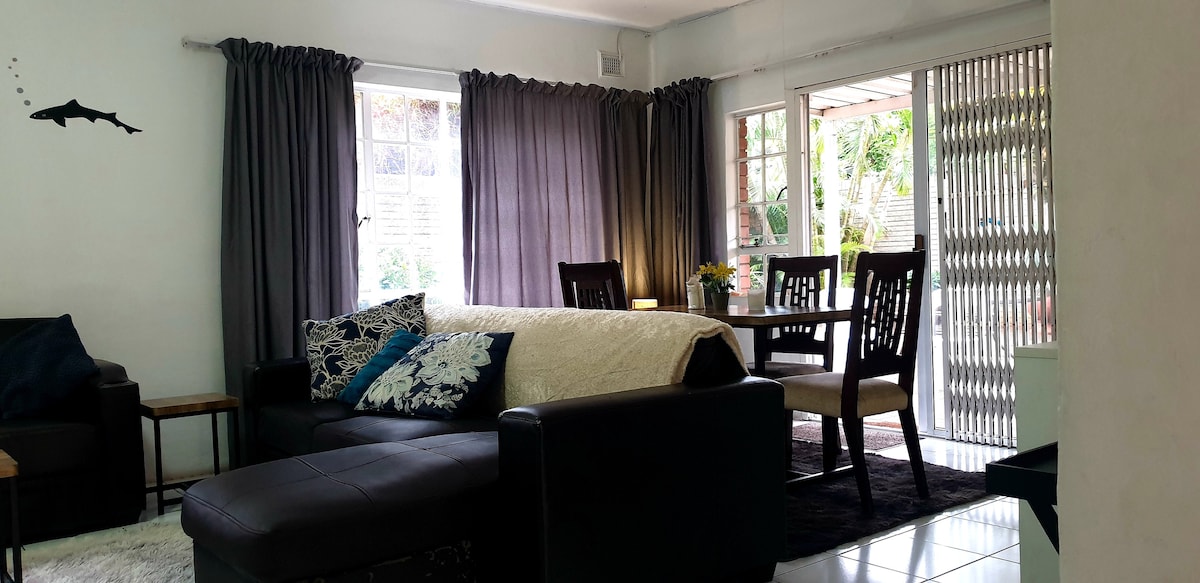 Poznámka: Každý další host platí méně než první host. Plně vybavený zahradní domek s 1 ložnicí, ložnice s vlastní koupelnou. Rozkládací dvojitá pohovka v obývacím pokoji. Plně vybavená kuchyně, plný DSTV, Wi-Fi, výhled na moře, 2 km od pláže, kriketový stadion Kingsmead, ragbyový stadion Kings Park. 1,4 km od stadionu Moses Mabida a nákupního centra. 3 km od konferenčního centra Durban. Jízda Uberem do restaurace Florida Road a na ulici plnou zábavy stojí 20–30 randů. Vyzvednutí na letišti lze zařídit za dodatečný poplatek.