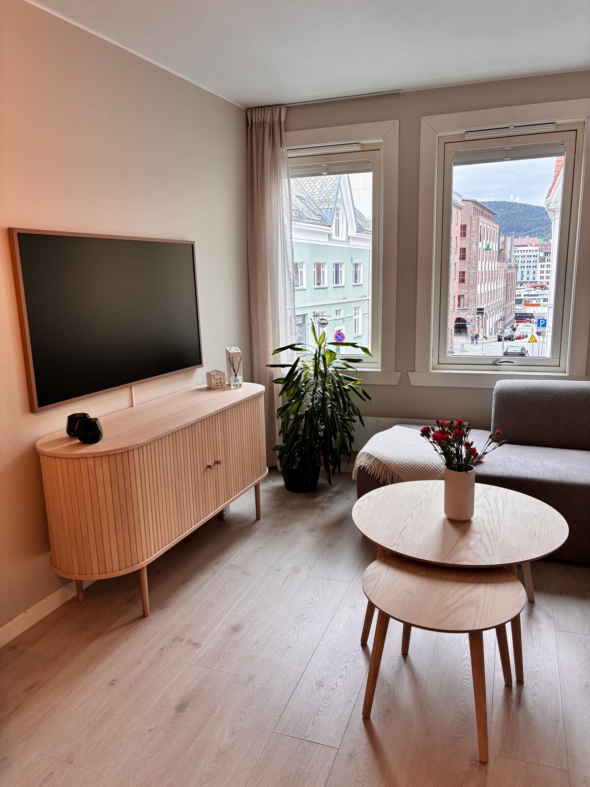 Fra dette bostedet har du enkel tilgang til alt. I det man går ut av gatedøren vil man ha hele byen og alle underholdnings-, service- og shoppingtilbud innen kort gangavstand. Fra leiligheten spaserer man til "alt"! Avstander: - 300 meter til Den Blå Steinen - 600 meter til Fisketorget - 900 meter til Fløien Kvaliteter: - Kjøkken med alt man trenger - Sengetøy og håndklær inkludert - Heis i bygget - Høyttalersystem integrert - Fransk balkong - Vaskemaskin - Enkel innsjekk med nøkkelboks