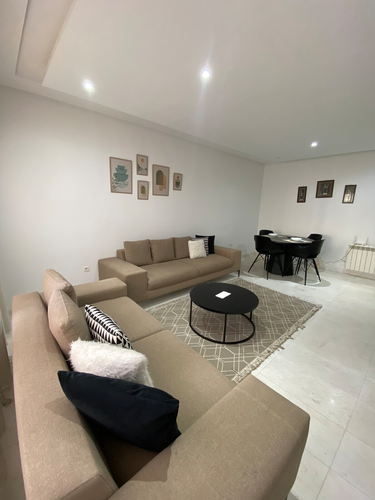 Oddechněte si v tomto klidném a útulném ubytování, které je luxusně vybavené a s harmonickým dekorem zajišťujícím příjemný pobyt. Apartmán se nachází v klidné rezidenční oblasti, zahrnuje obývací pokoj s rozkládací pohovkou, ložnici s balkonem a dobře vybavenou kuchyňku. 📍Nachází se v blízkosti všech potřebných služeb: Carrefour, restaurace, kavárny, salony, posilovna, lékárna... Letiště Tunis Carthage je vzdáleno 5 minut.