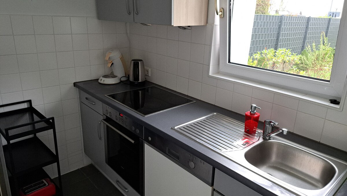 Moderní 3pokojový byt (91 m²) s 1,5 koupelnou – pro až 6 osob, ideální pro veletrhy, služební cesty a rodiny. → Kolín nad Rýnem (katedrála/Lanxess-Arena) za 10–15 minut autem/taxíkem, 20–30 minut tramvají → garážové parkování a balkon → plně vybavená kuchyň, smart TV, Wi-Fi ☆ „Očekávání byla jasně překročena.“ Další zajímavosti: → dvě ložnice s novými pružinovými postelemi + rozkládací pohovka → kompletně zrekonstruovaný a nově zařízený byt → výtah → přístup bez schodů → pračka a sušička