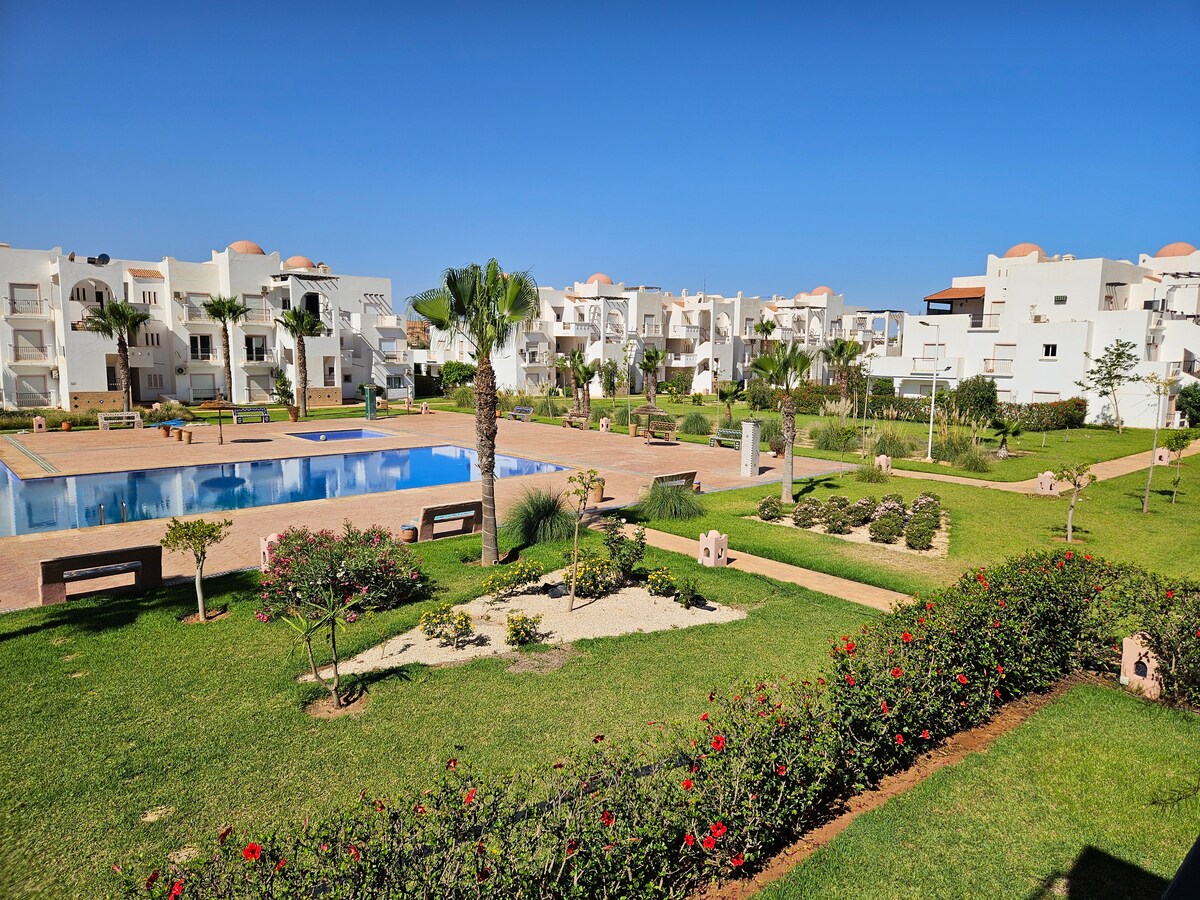 Velmi pěkný apartmán s nádherným výhledem na bazén v uzavřené rezidenci, v blízkosti přístavu Saidia a pláže (méně než 2 km) ideální pro malou rodinu.