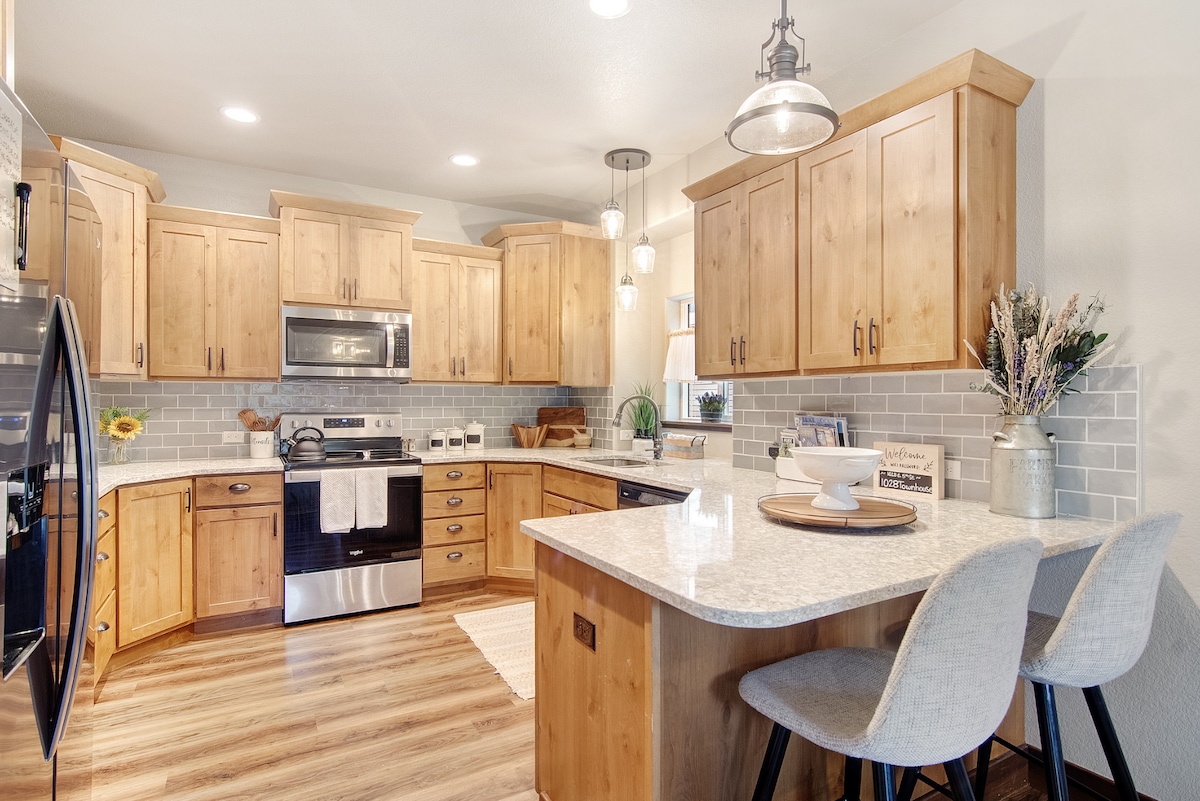 Odpočiň si v Coloradu v tomto nově postaveném domě ve čtvrti Oldtown. Každý pokoj je krásně uspořádán s důrazem na luxusní pohodlí. Velmi dobře zásobená kuchyň, měkoučké povlečení, zatemňovací závěsy, chytré televize a další. Dobře vychované psy vítáme: Plně oplocený dvorek a 2 psí přepravky, plus misky na jídlo a psí sáčky. Domácí mazlíčci nejsou povoleni v ložnicích ani na nábytku. Ideální pro rodiny s dětmi: patrové postele, pack'n'play, bassinet, jídelní židlička a další!