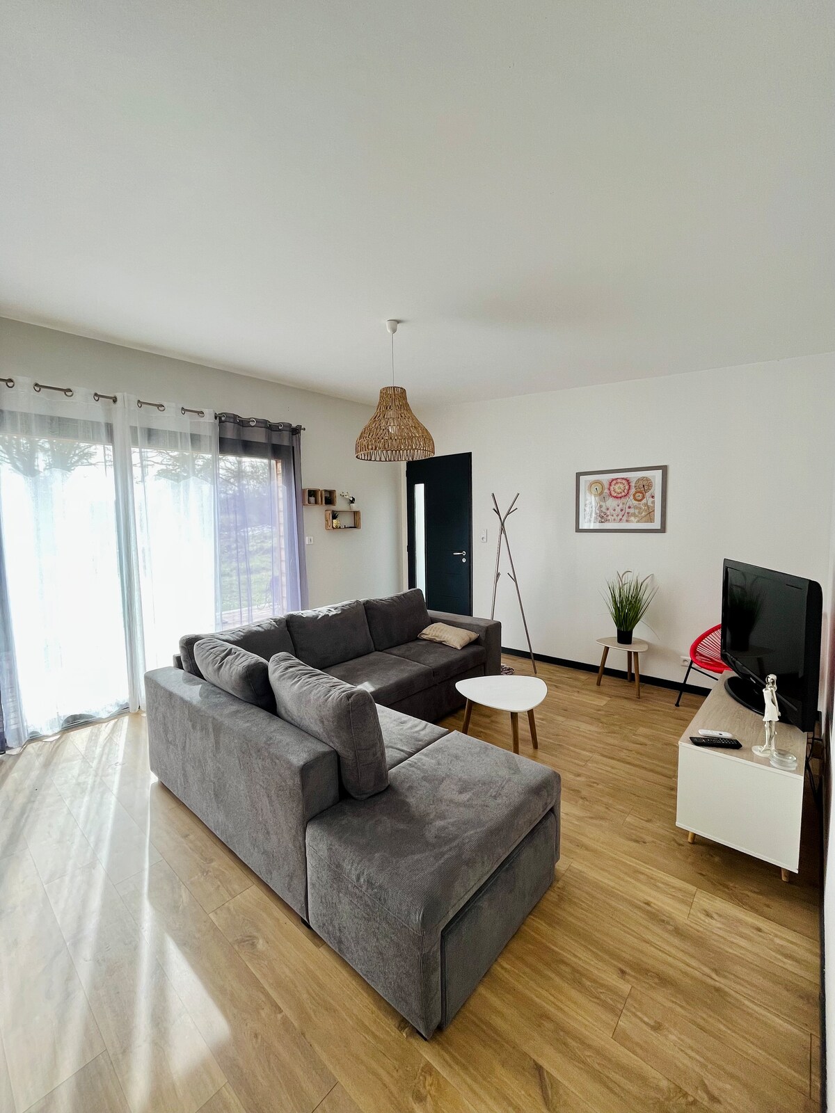 Maison mitoyenne à la notre, complètement indépendante avec terrasse privée et grand terrain partagé. Rénovée, au calme , tout en restant aux portes de Poitiers. Gd centre commercial <10 min en voiture <30 min du Futuroscope 5 min du château des Piliers et de l'Abbaye du pin. Kit bébé (chaise haute + lit parapluie) ⚠️Linge de lit fourni pour MINIMUM 2 nuits PREVOIR VOTRE LINGE DE TOILETTE.
