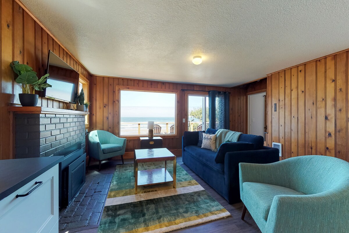 Chata na pobřeží oceánu s krbem a soukromou vířivkou! Užij si pobyt na pobřeží v této chalupě přímo u oceánu s krbem a vířivkou! Tato chata má ložnici s manželskou postelí a připojenou koupelnou v přízemí, stejně jako bonusovou místnost nahoře s rozkládací pohovkou. Upozorňujeme, že jediná koupelna je mimo ložnici. Tato dvojdomek je jedním z 9 jednotek v Cape Cod Cottages, se sdíleným vybavením, včetně tří nabíječek EV úrovně 2, prádelny a herny se stolním fotbalem a ping pongem. Nachází se přímo na pláži Big Stump Beach, s kilometry písku v každém směru. Waldport – skvělé místo pro lov krabů a škeblí – je jen kousek na sever a malebné město Yachats s přílivovými jezírky a okouzlujícími obchody a restauracemi je jen kousek na jih.