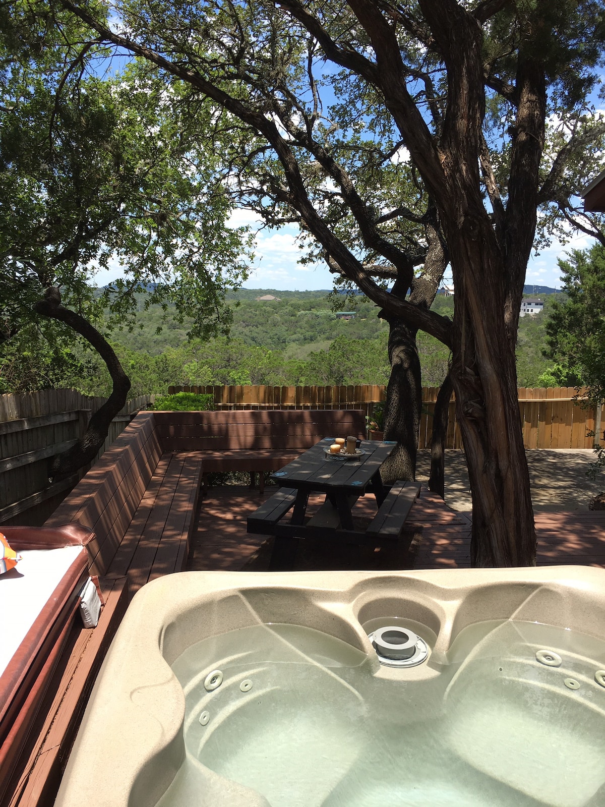 Tento srub se nachází na ranči Hill Country Riding Academy. Je to pouze 750 metrů čtverečních s otevřeným prostorem dole s manželskou postelí a dvojitou postelí v podkroví nahoře. Nedávno byl kompletně přestavěn a může se pochlubit roztomilou kuchyní s nerezovými spotřebiči a koupelnou s vanou. Srub je velmi soukromý, nachází se za domem majitelů ranče. Má krásný výhled na sever na ranč s hojností divoké zvěře. A je to jen 5 mil od New Braunfels.