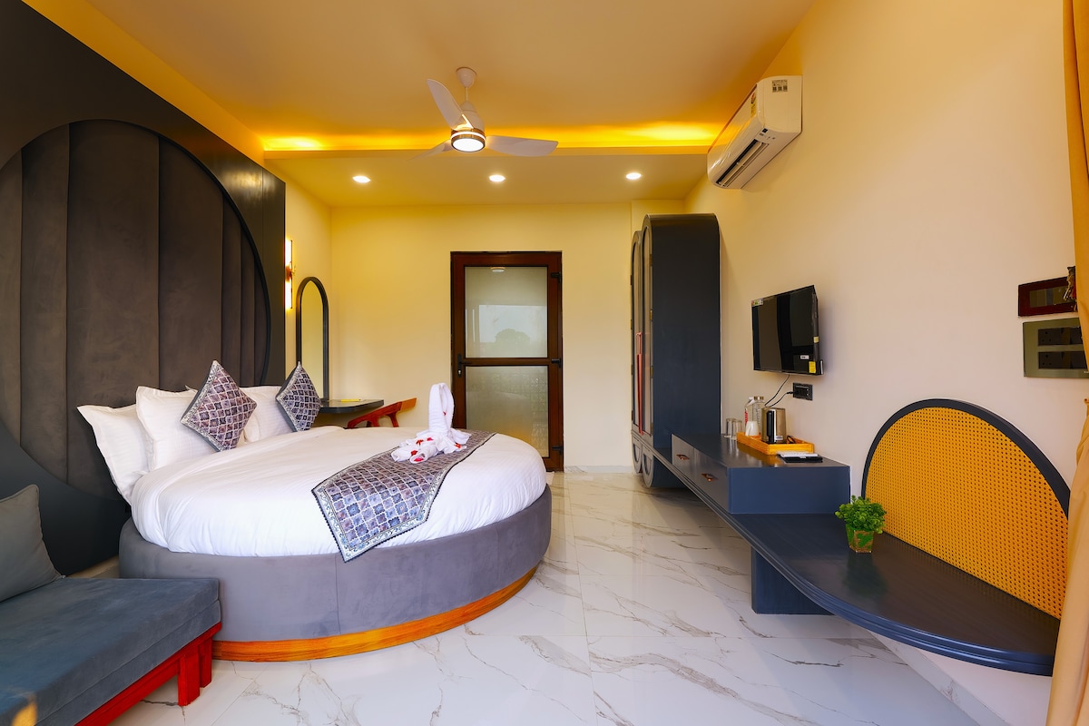 Experience luxury and comfort at its finest in our Deluxe Room at Prashant Retreats. Step into a spacious oasis that offers a serene ambiance and modern amenities, perfect for both business and leisure travelers. The room boasts elegant decor, creating a calming atmosphere for a peaceful stay. Indulge in a restful night's sleep on the plush king-size bed, and wake up to stunning views of the surrounding landscapes.