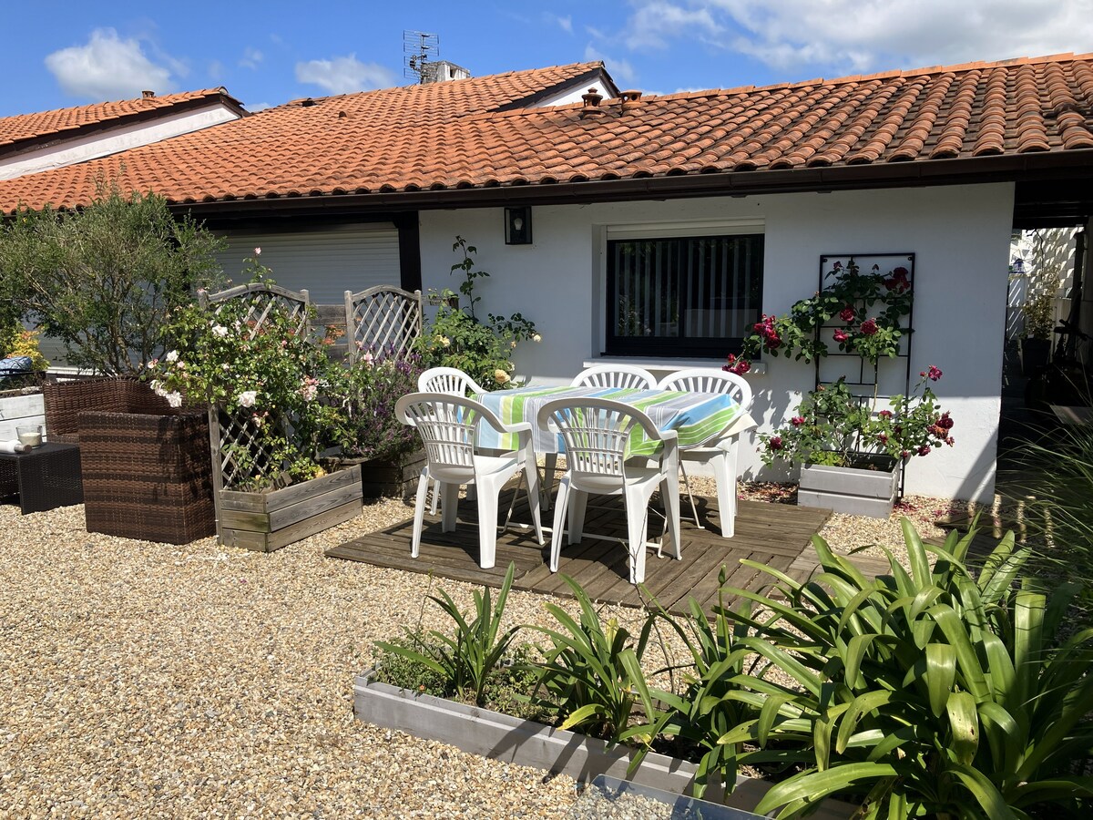 Nový dům o rozloze 100 m2 mezi mořem a golfem, velmi světlý , výhled na golfové hřiště Biarritz, prostorné se dvěma ložnicemi, které se nacházejí pět minut chůze od oceánu, kde se můžete najíst v mnoha restauracích. Obchody ve spodní části ulice. Parkování a zahrada o rozloze 3500 m2 balijská/ japonská atmosféra s lehátkem, chladícím prostorem, grilem , ohništěm ... Zenová atmosféra zaručena:)