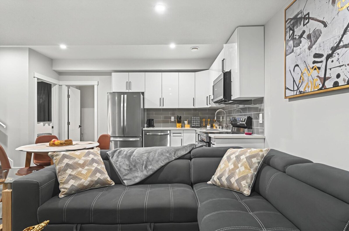 Our newly-renovated and romantic NYC loft-inspired basement suite offers over 1000 square feet of luxurious living space. With its high ceilings, floor-to-ceiling glass walls and French doors, and cozy in-floor heating, you'll feel like you're in a real loft. The high-end kitchen and bathroom add a touch of sophistication, and the 90s Simpsons arcade game provides hours of entertainment. Book your stay with us and experience the luxury and comfort of our suite.