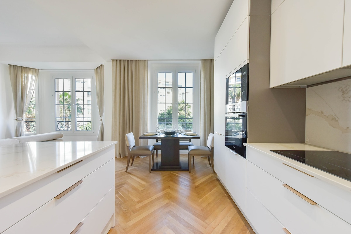 Vítej v našem nádherném bytě na slavném Boulevard de la Croisette v Cannes! Náš luxusní apartmán se 2 ložnicemi, který se nachází v srdci této ikonické destinace, nabízí bezkonkurenční pohodlí a úchvatný výhled na Středozemní moře. Díky elegantní výzdobě, modernímu vybavení a soukromé terase je tento byt ideálním útočištěm pro ty, kteří hledají nezapomenutelný zážitek.