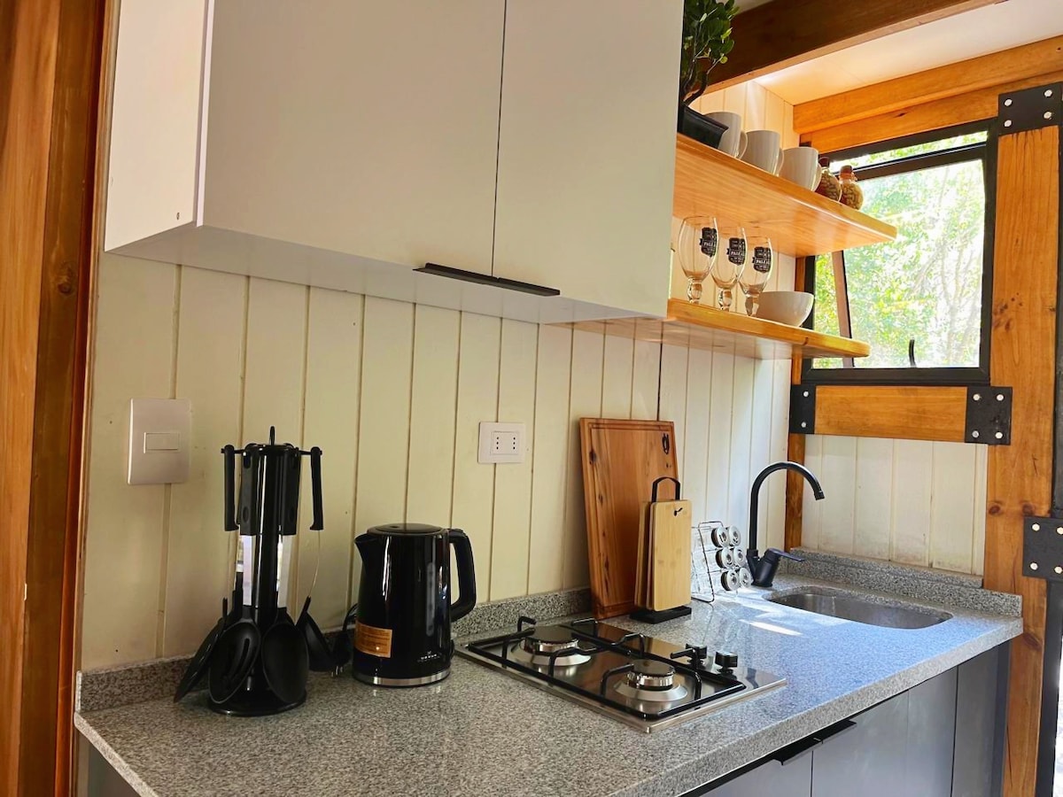 Zažij jedinečný zážitek v našem domě na stromě, útočišti obklopeném přírodou a klidem. Uvolni se při procházce mezi stromy nebo se osvěž u ústí řeky, která protéká krajinou. Je to ideální místo pro páry nebo pro ty, kteří potřebují odpočívat. K dispozici je manželská postel, WiFi, plně vybavená kuchyň a balkon s výhledem na vinici. Jen 7 minut jízdy na Plaza de Quillón a 10 minut na lagunu Avendaño. Užij si příjemné prostředí a přírodu na své příští dovolené!