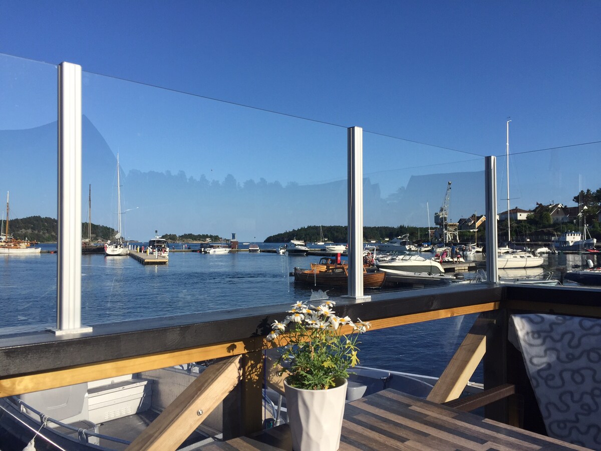 Chalupa, loď, lázně, soukromý přístav, Lillesand