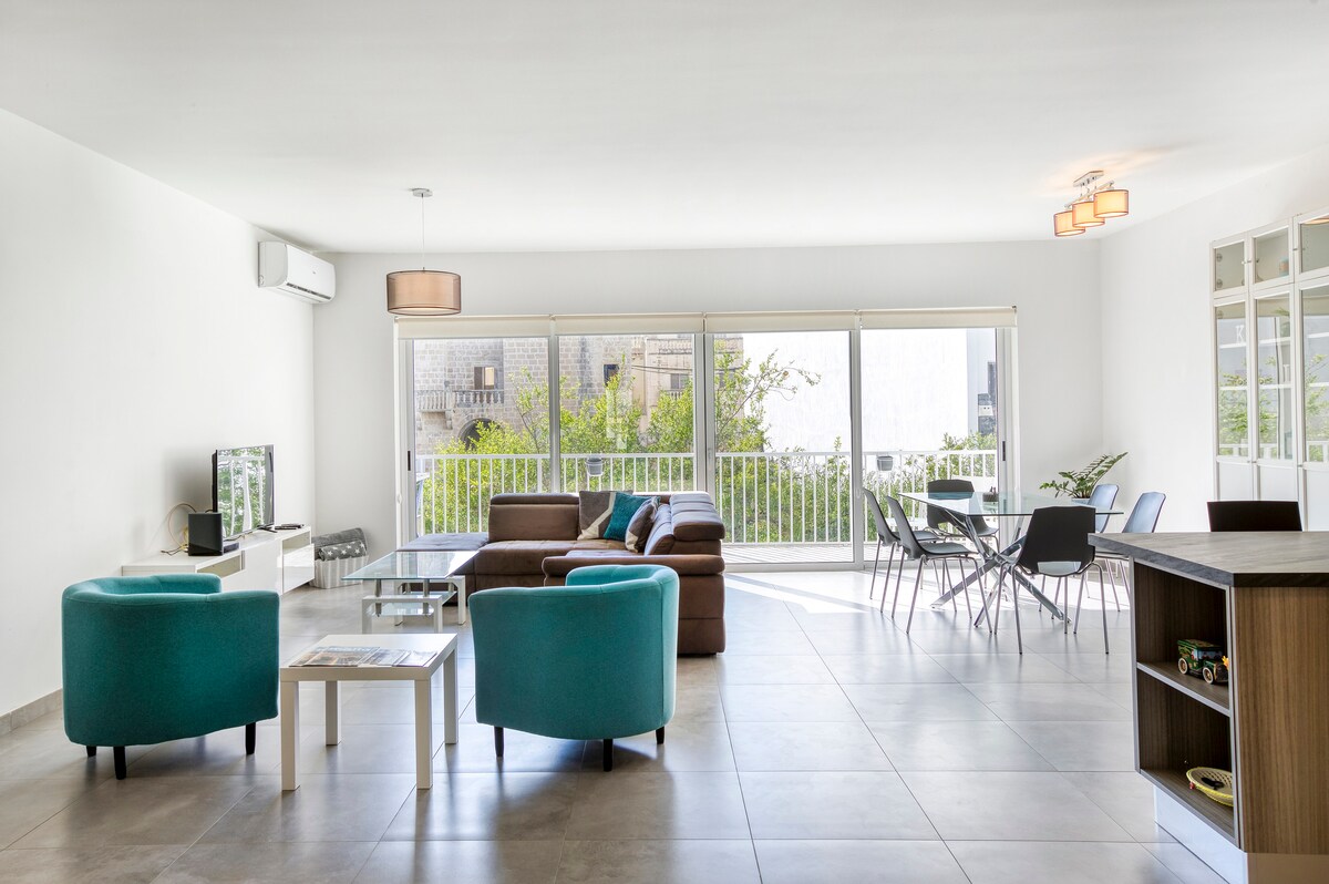 This spacious, bright and quiet apartment is centrally located in the historic and picturesque Grand Harbour area of Floriana, just 7 minutes walk from the heart of Valletta. Byt se nachází ve druhém patře (bez výtahu) památkově chráněné budovy z počátku 20. století a má vysoké stropy a tradiční maltský dřevěný balkon. Prostor se skládá z vybavené kuchyně se všemi spotřebiči, velké hlavní ložnice, prostorného obývacího a jídelního prostoru a koupelny se sprchovým koutem.