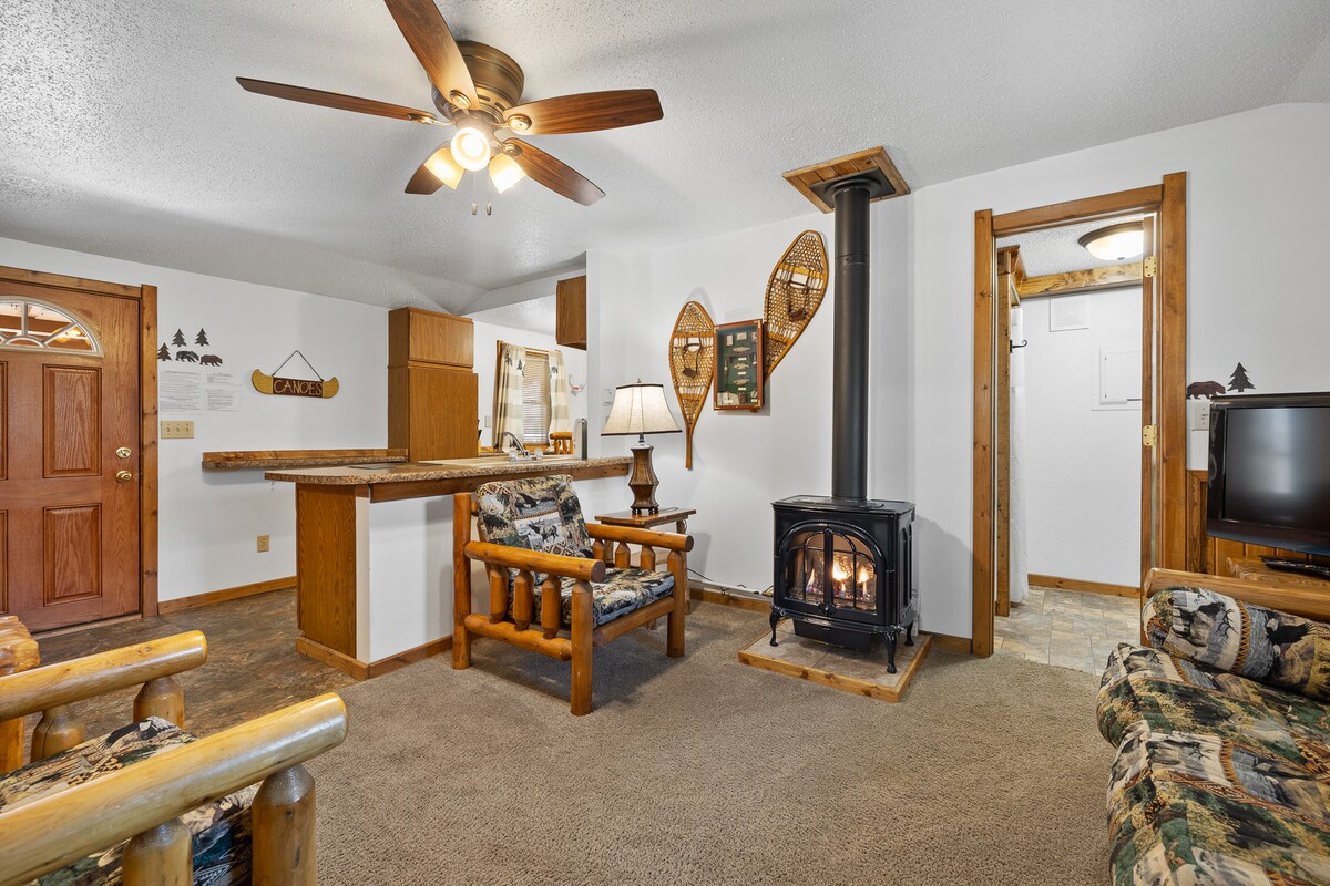 Chata #9 je útulná chata s 1 ložnicí a 1 koupelnou. Máme společnou vířivku poblíž a je v docházkové vzdálenosti od potoka a turistických stezek. Jedna hodina od Mt Rushmore a letiště Rapid City. Tři bloky od BHSU! Televizory ROKU s plochou obrazovkou a HULU LIVE, Disney+ a ESPN+. Wi-Fi zdarma. *POVOLENÉ JSOU POUZE DVA PSI. PLATÍ POPLATEK ZA DOMÁCÍHO MAZLÍČKA. JEDNORÁZOVÝ POPLATEK ZA DOMÁCÍHO MAZLÍČKA JE 30 USD. ŽÁDNÉ KOČKY. PRO PODROBNOSTI MI PROSÍM NAPIŠTE.* *V nemovitosti je zakázáno kouřit*