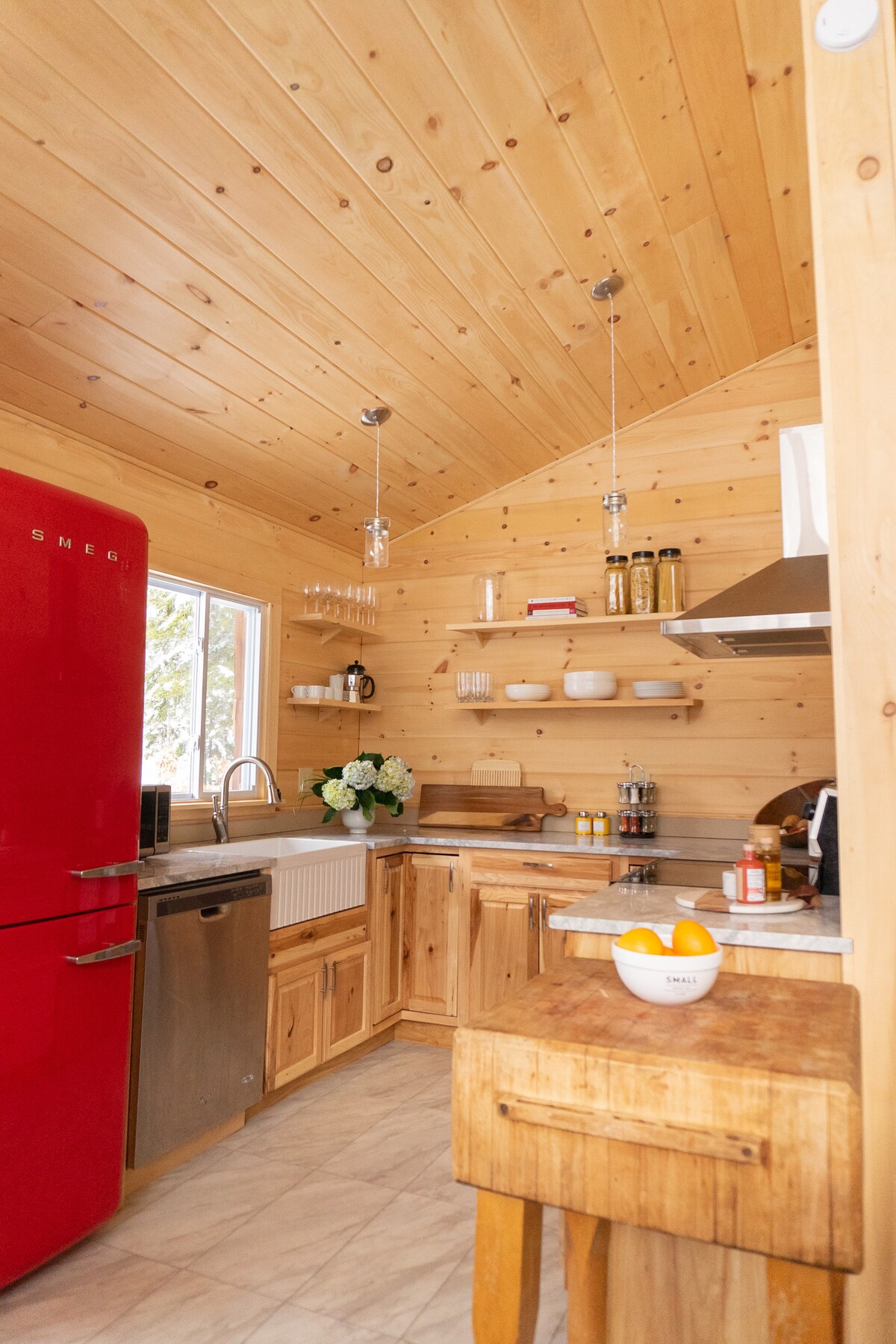 Chata je nastavena zpět, odlehlé, neuvěřitelně útulné a nádherně romantické. Je to místo, kde se můžete znovu spojit a dobít, poslouchat řeku a slyšet vítr mezi stromy a dopřát si pomalé obědy a dlouhé procházky a opravdu žasnout nad Catskills. V létě je tu turistika, v zimě lyžování, čerstvý horský vzduch a tma, hvězdné noci. Tohle je dům a ty se k němu tak můžeš chovat. Ale pokud se pustíte a poddáte se energii prostoru vytvořeného láskou, bude se to cítit jako domov.