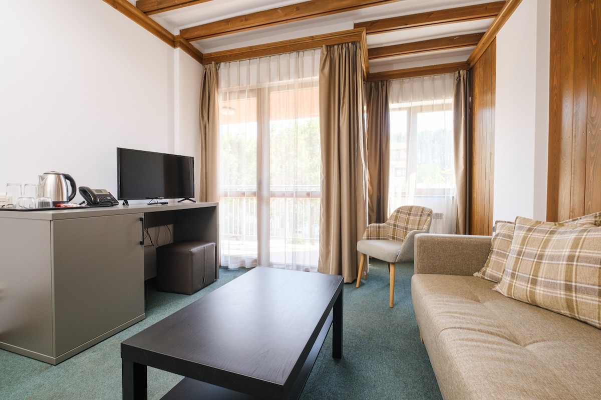 Apartmán v Perun Lodge Hotel. The Lift is a five-minute walk from the hotel. Pohodlně se vejde pro tři osoby. Hotel je mimo sezónu uzavřen, takže bazén a lázně nejsou v současné době k dispozici (k dispozici jsou místa v okolí). Na recepci je nepřetržitě hlídač.