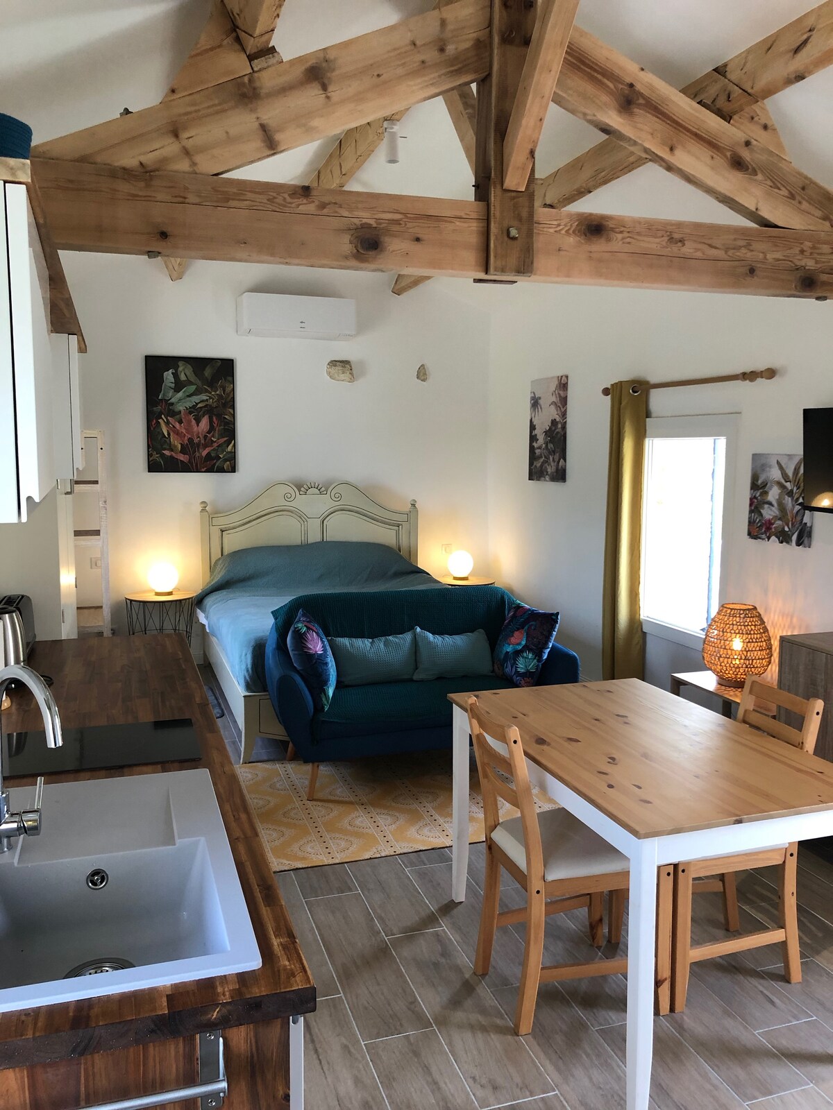 2 pokojové studio v blízkosti majitelů (dům poblíž, bez přímého souseda). Samostatné ubytování: 20 m² zahrnující - kuchyňské vybavení (lednice, myčka nádobí, varná deska, mikrovlnná trouba, elektrická trouba, varná konvice, kávovar SENSEO) - postel 140 cm s TV + sprchový kout a koupelna - samostatné WC. Ložní prádlo, polštáře, přikrývky a ručníky jsou součástí vybavení Nachází se v klidné a příjemné vesničce, v srdci turistických památek, propasti Padirac, Rocamadour, Sarlat ...