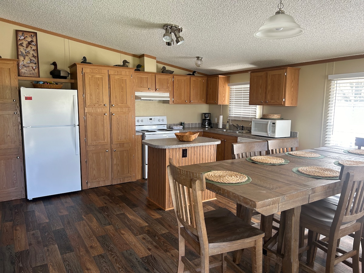 V tomhle ubytování je dostatek místa na zábavu všeho druhu pro celou rodinu. Tento nádherný dům nabízí dvě manželské postele a dvě samostatná lůžka. Dům je vybaven klimatizací, žehličkou, mincí, prádlem, Wi-Fi, topením, fénem, hrami, plně zásobenou kuchyní. Navíc útulný obývací pokoj s futonem pro další prostor. Zapomeňte na vše a odpočiňte si a užijte si vše, co Advance a náš dům nabízí. Dům se nachází jen pár minut od prvotřídní oblasti pro lov kachen.